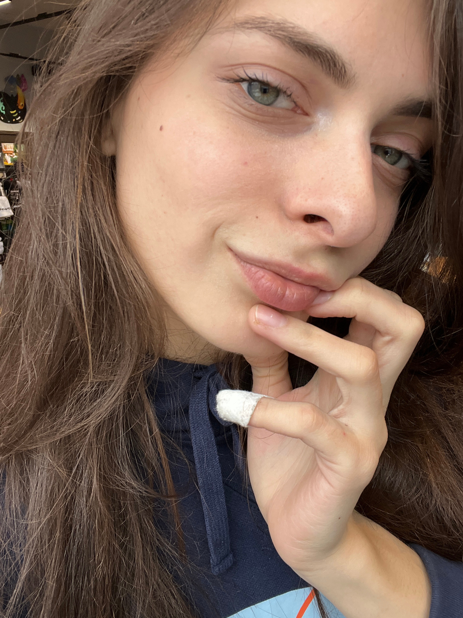 A close-up, high-angle portrait features a young woman with long, dark brown hair cascading around her. Her head is slightly tilted, and she gazes towards the viewer with greenish-grey eyes, framed by…read more