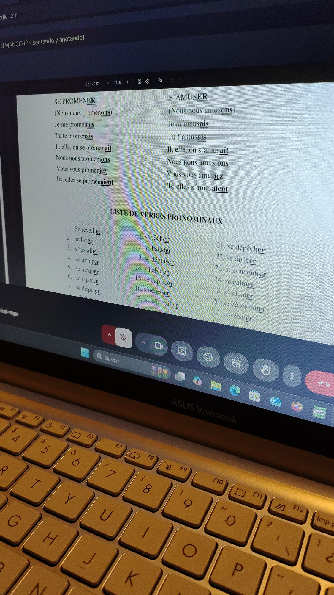 The image captures a close-up, angled view of a laptop screen displaying a document and part of its golden-colored keyboard. The scene appears to be indoors, likely a workspace in Chorrillos, Peru, wi…read more