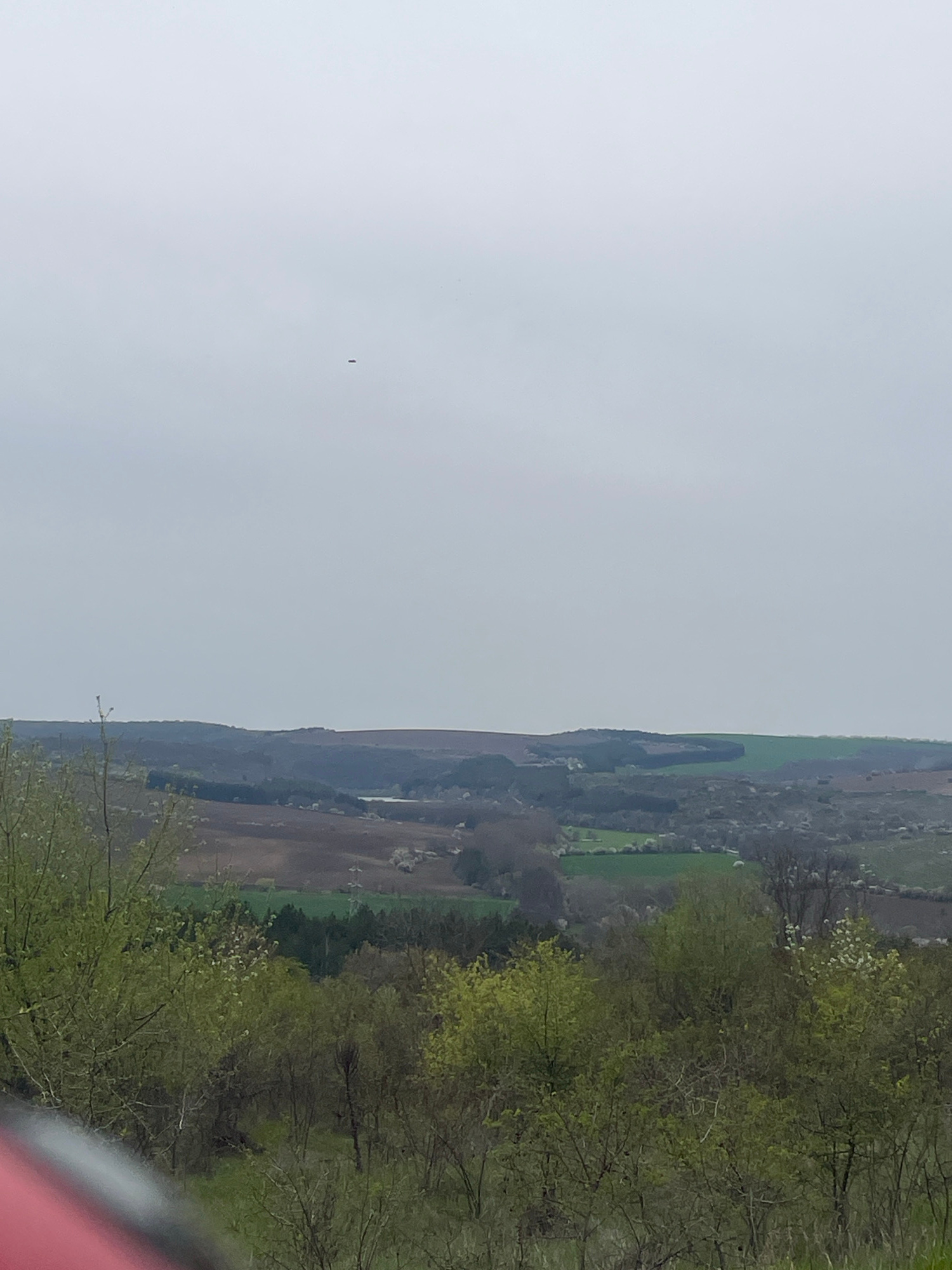 The image depicts a landscape scene, possibly taken from an elevated vantage point. The setting appears to be in Razgrad, Bulgaria, based on the topography and vegetation. The foreground features gree…read more