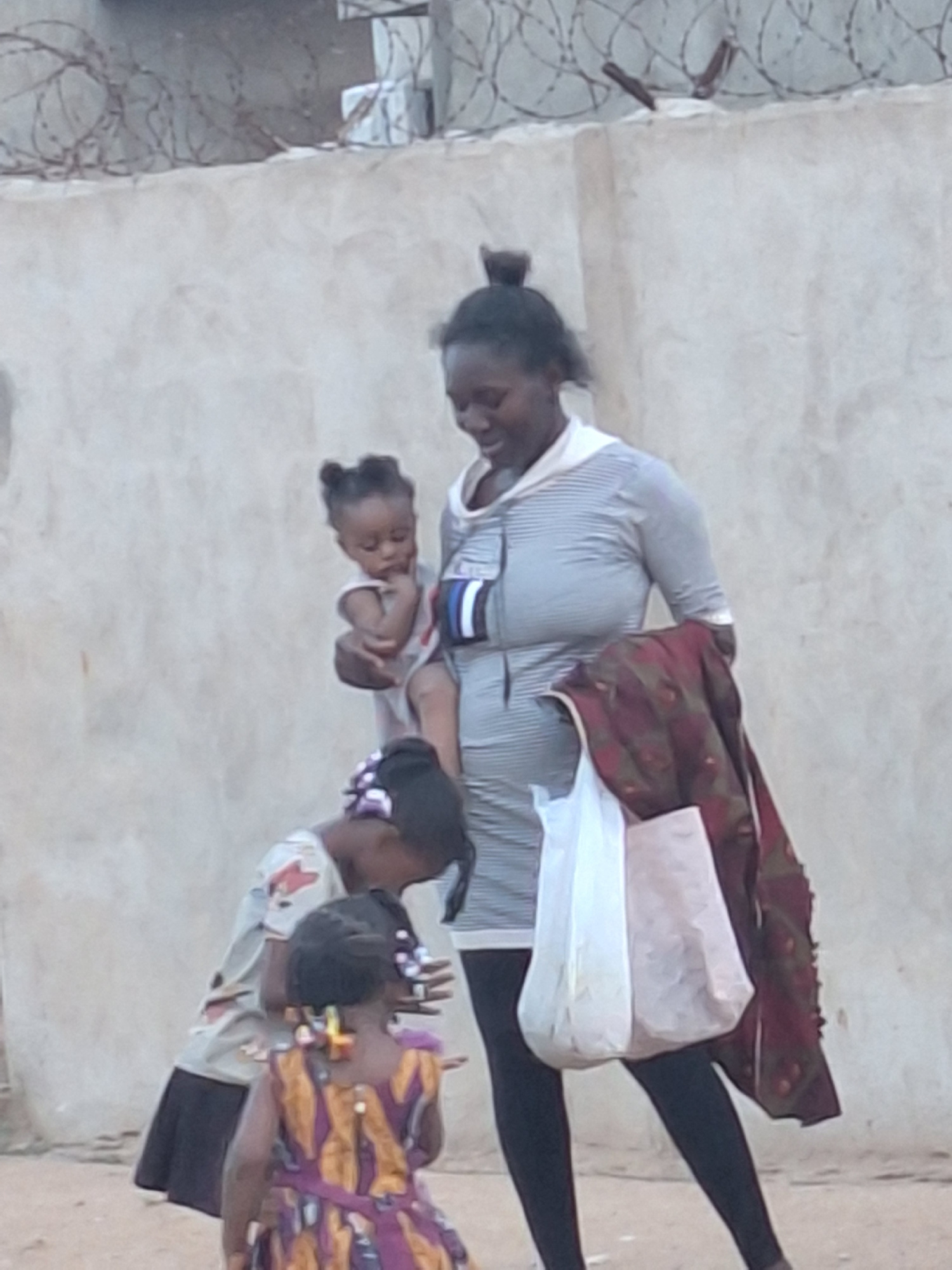An adult woman holding a baby is shown standing with two young girls in an outdoor setting in Sabon Tasha, Nigeria. The image is taken from a slightly elevated perspective. The woman, who appears to…read more