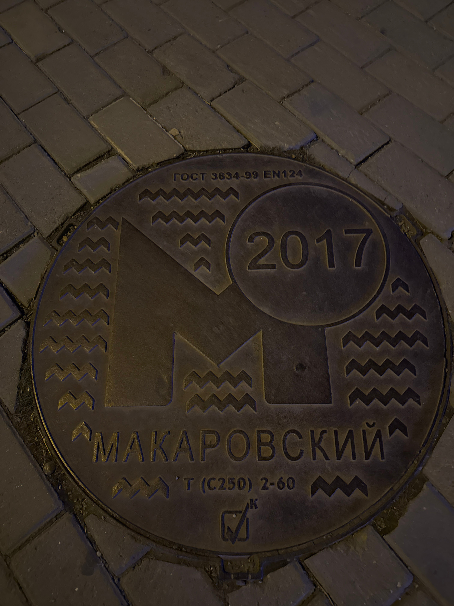 The image shows a close-up of a manhole cover embedded in a brick-paved surface. The manhole cover is circular and made of a dark metal, likely cast iron. The year "2017" is prominently displayed in a…read more