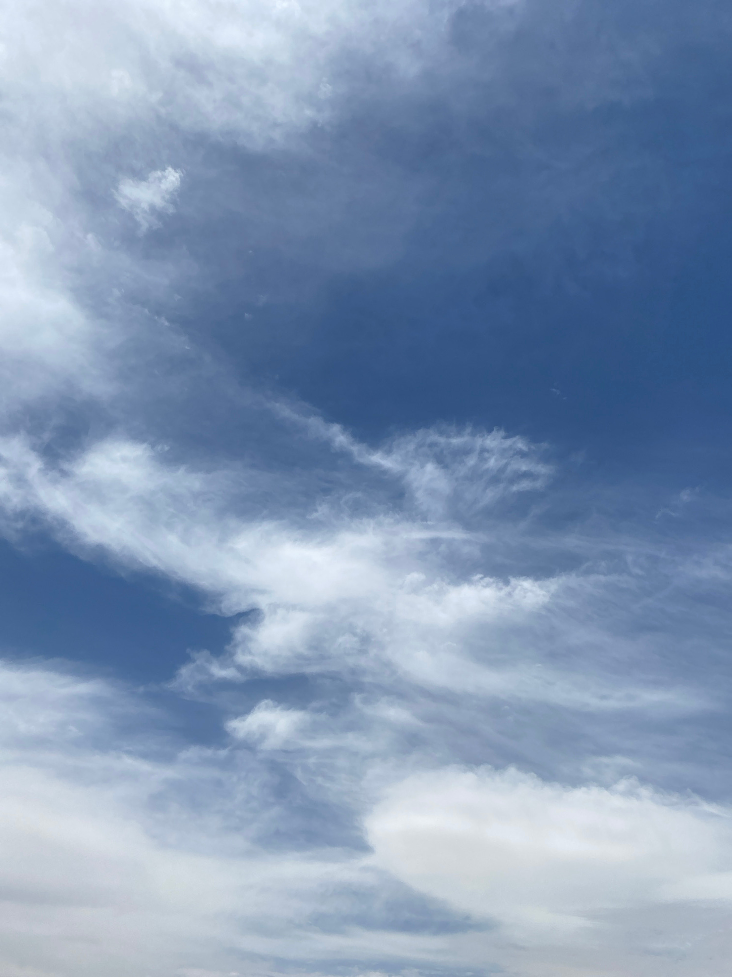 The image depicts a blue sky with wispy white clouds. No evidence suggests this image was taken in Rido, Nigeria. No people or objects are visible. The only action is the movement of clouds. The envir…read more