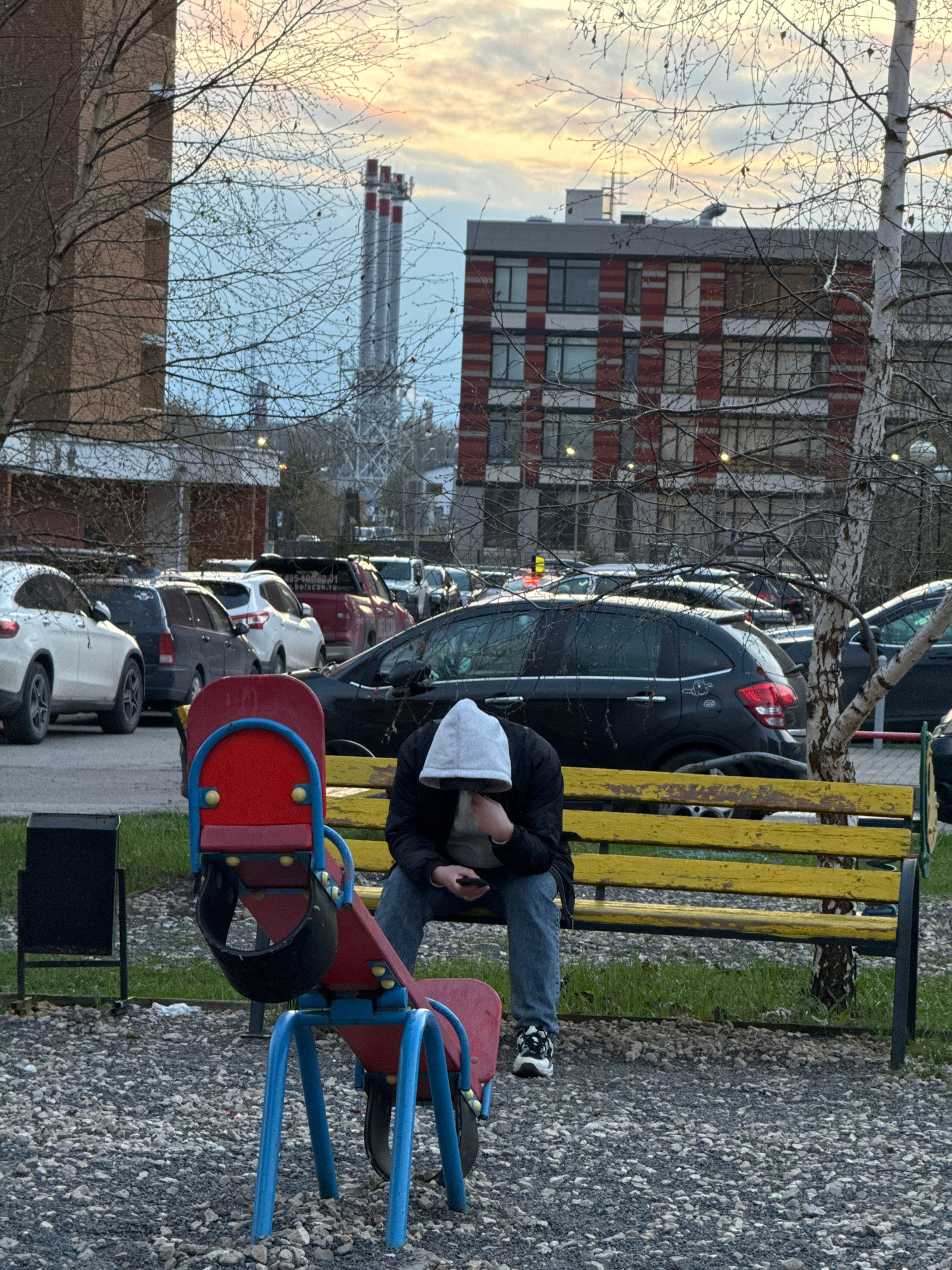 The image depicts an outdoor urban or suburban scene, likely a residential area or a park adjacent to one. The scene appears to be set during either early morning or late afternoon, characterized by sā¦read more