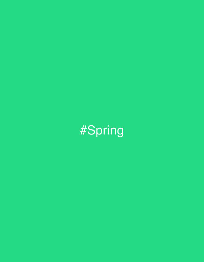 The image displays a solid, uniform field of vibrant green color. Centrally positioned within this green background is white text that reads "#Spring". No discernible individuals, subjects, objects, a…read more