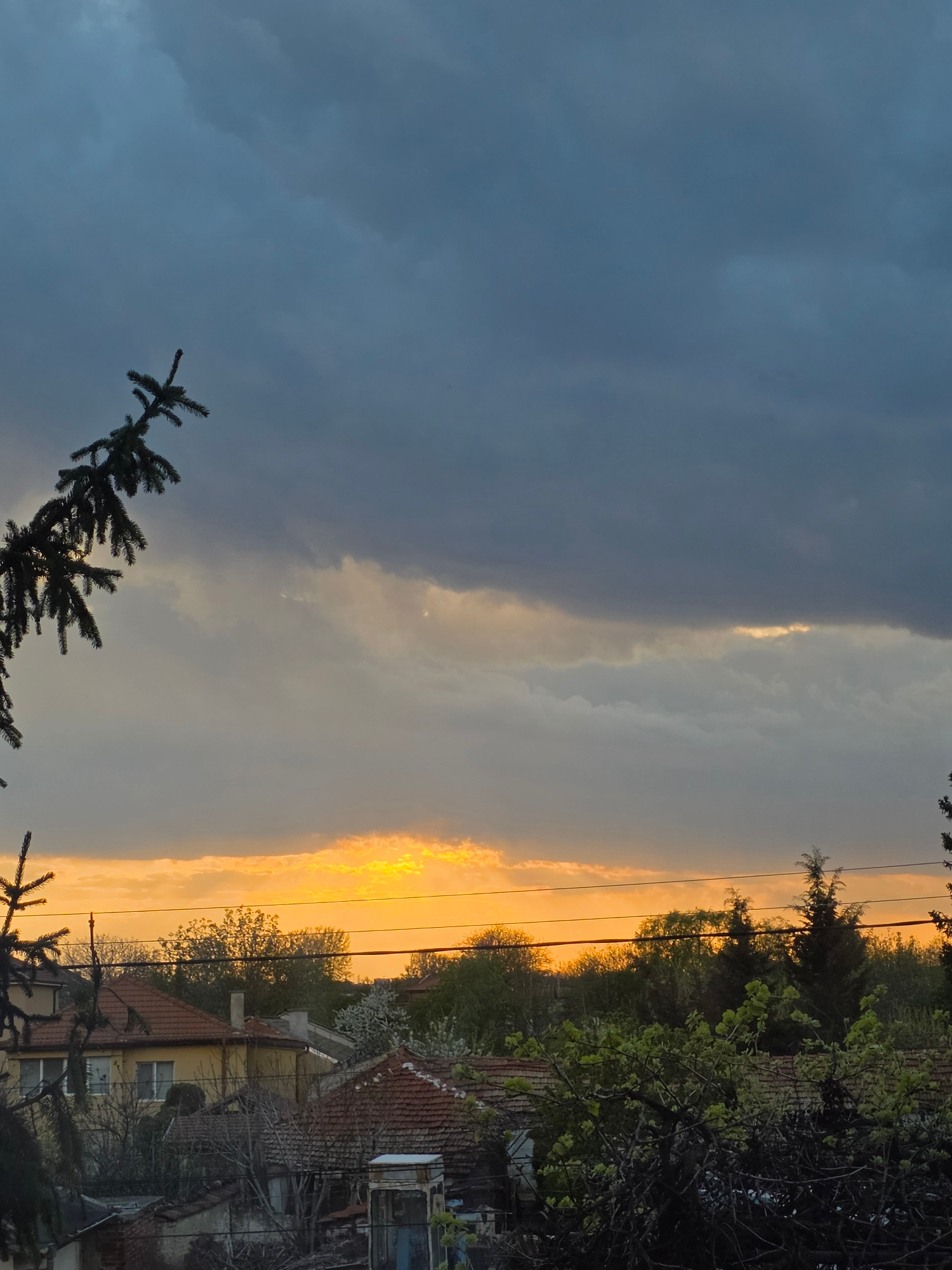 The image depicts a dramatic landscape during either sunrise or sunset over the village of Yagodovo, Bulgaria. The sky is a central feature, presenting a stark contrast between dark, stormy conditions…read more
