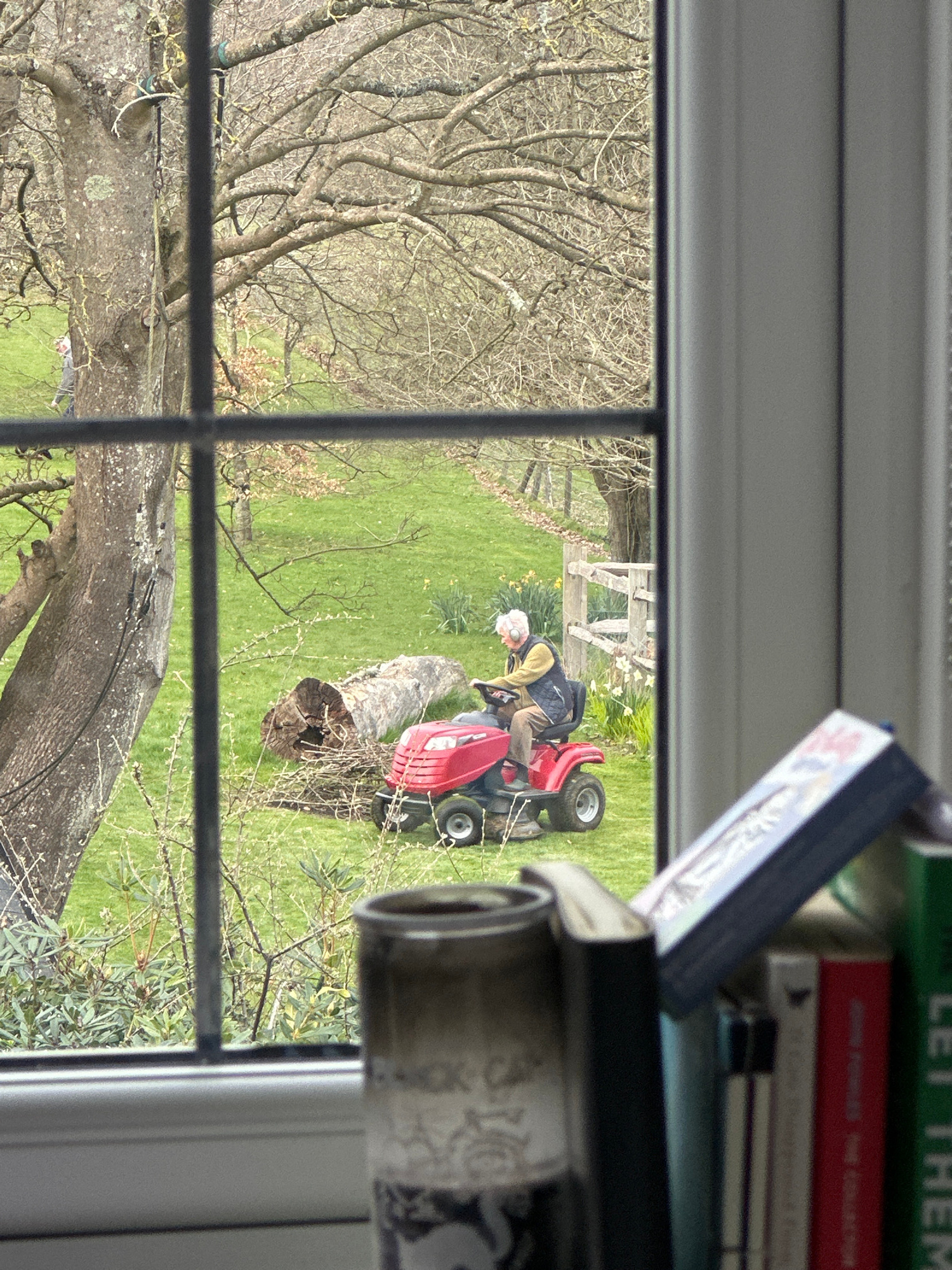 An elevated view from within a building in Wealden, United Kingdom, looks out through a multi-pane window onto a spacious outdoor area. The scene is illuminated by daylight, suggesting late winter or…read more
