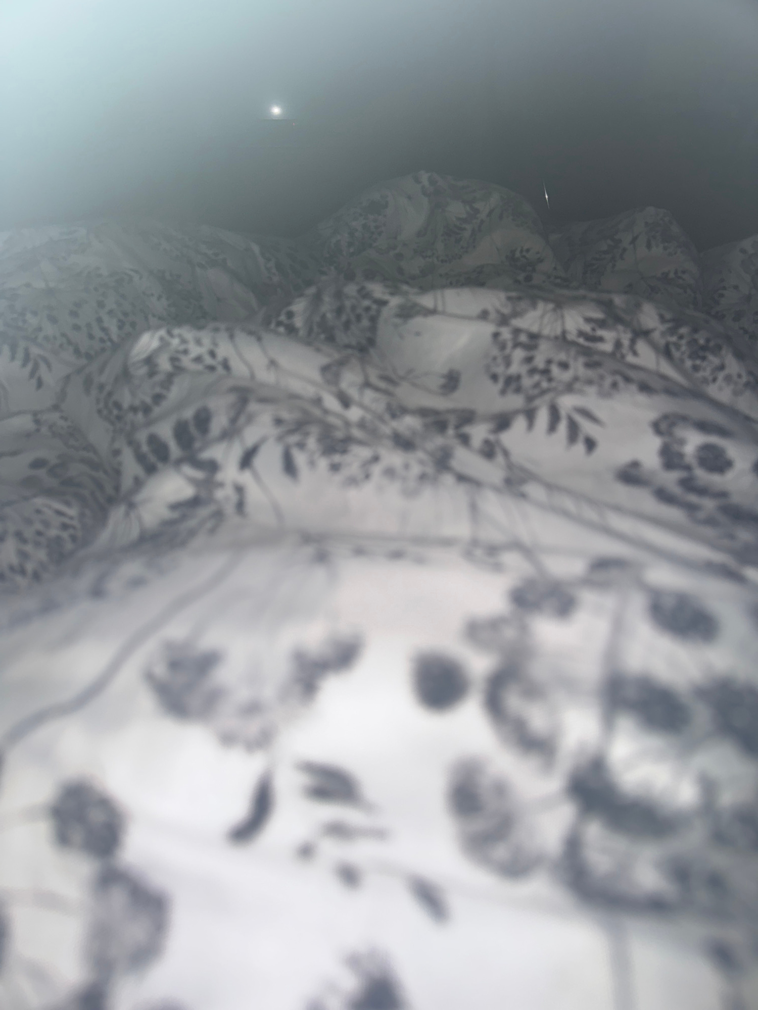 The image shows a close-up view of a fabric with a floral pattern, likely white with dark gray or black floral designs. The image is out of focus, making it difficult to distinguish the specific detai…read more