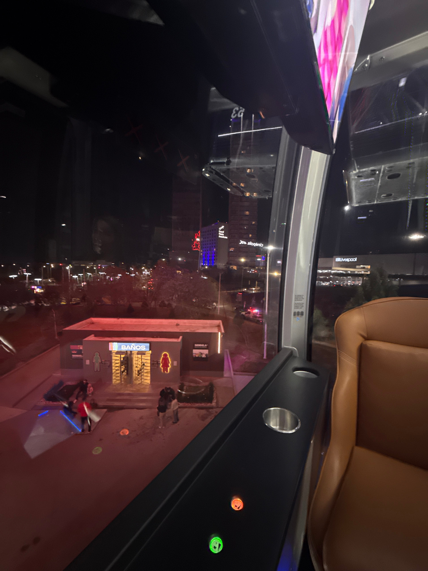 The image, taken from inside a car, shows a nighttime view of the city of Puebla, Mexico. Through the car window, city lights, tall buildings, and street activity are visible. On the right side of the…read more