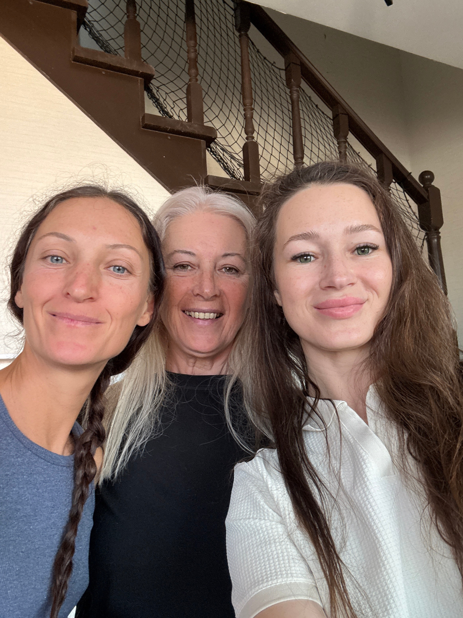 A close-up, frontal portrait features three smiling adult females positioned in an indoor setting. The specific location within Ulyanovsk, Russia, is not discernible from the visual information provid…read more