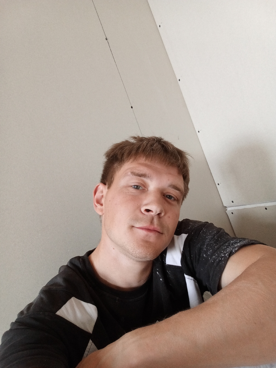 The image displays a selfie of a young adult man indoors in Chaikovsky, Russia. He has short, light brown hair, light-colored eyes, and a neutral, slightly relaxed expression as he looks directly into…read more