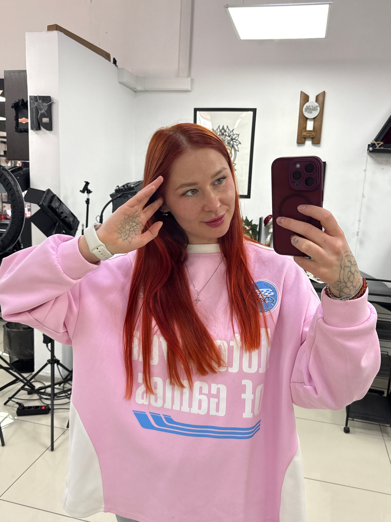 A young woman with long, vibrant red hair takes a selfie in what appears to be an indoor studio or professional space in Rostov-on-Don, Russia. She is holding a dark red smartphone in her right hand,…read more