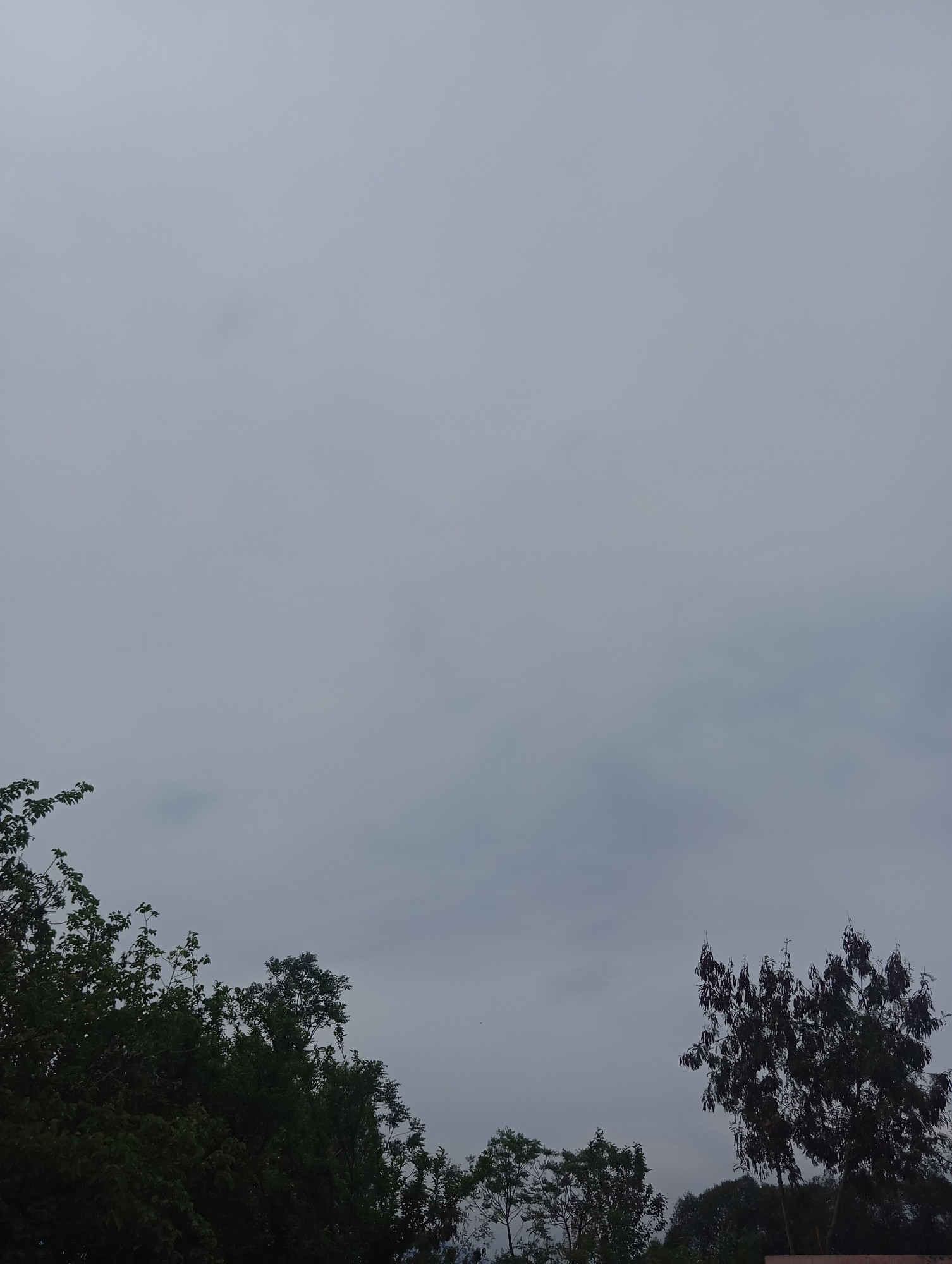 The image presents a view of the sky in Lassan, Pakistan, characterized by a dense overcast layer. The lower portion of the frame is occupied by treetops of varying heights and foliage densities. The…read more