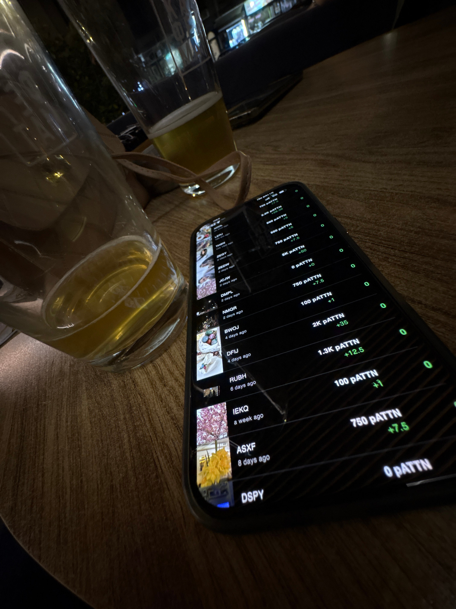 The image captures a close-up, angled view of a smartphone lying on a wooden table, with two glass bottles/jars in the foreground. One bottle contains a yellow liquid, while the other appears to hold…read more