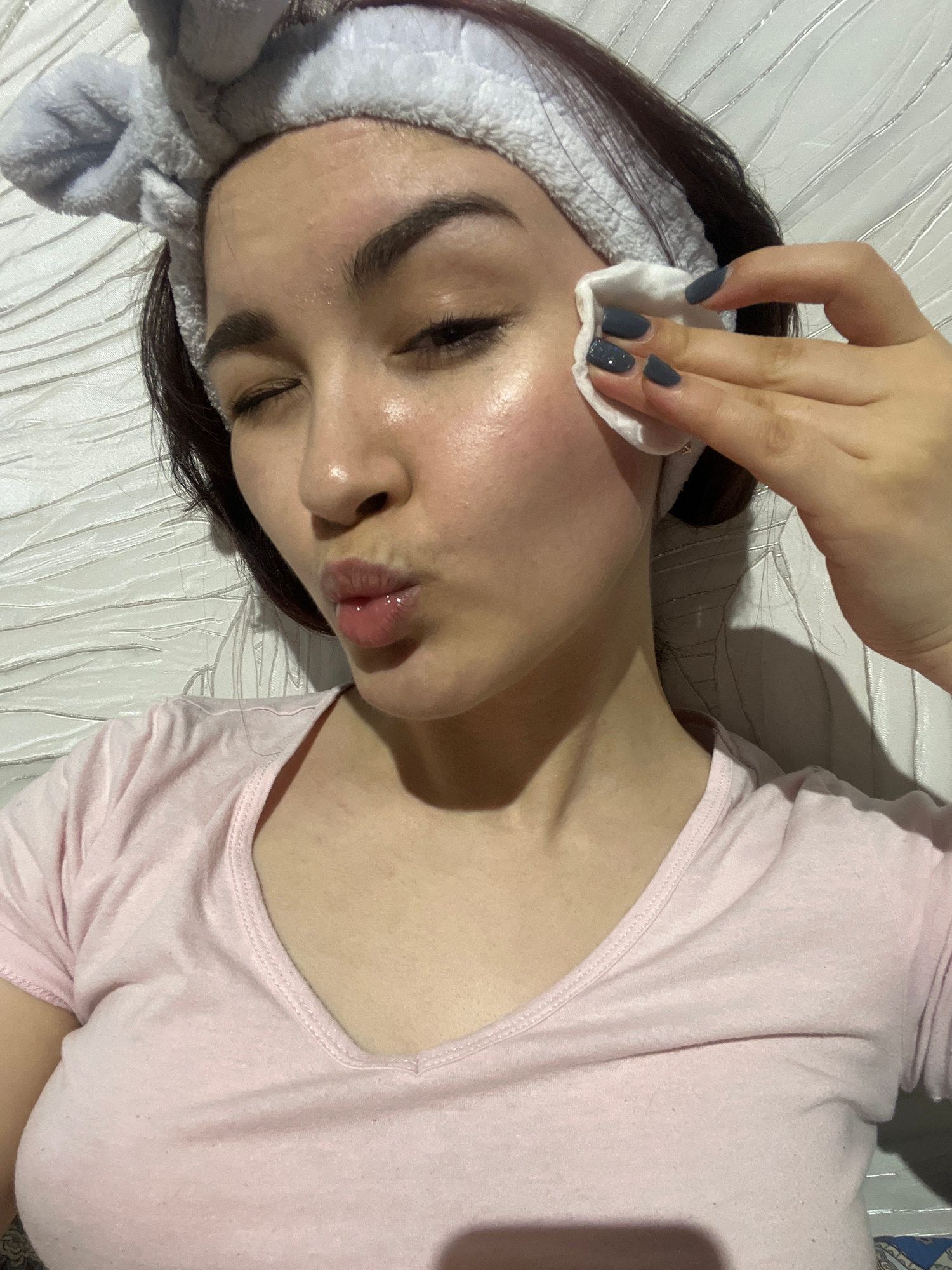 A woman lies on a white, textured surface, possibly a bed or couch, with her head turned slightly to the left. She wears a light pink shirt and a white headband with bunny ears. Her eyes are closed, a…read more