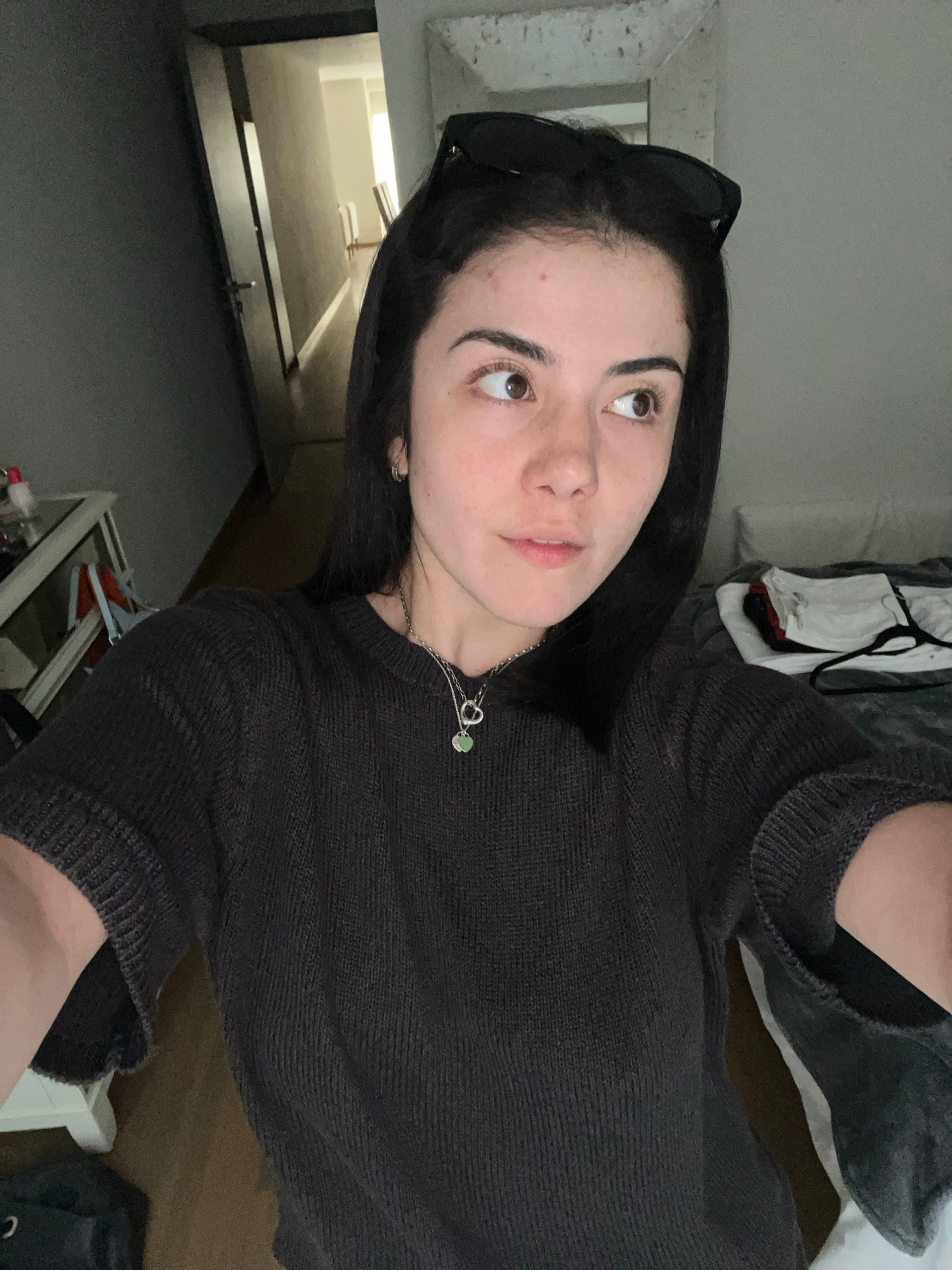 The media file contains an original image and six cropped versions, all depicting a young woman indoors. **Subjects:** The primary subject is a young woman with dark hair, dark eyebrows, and brown ey…read more