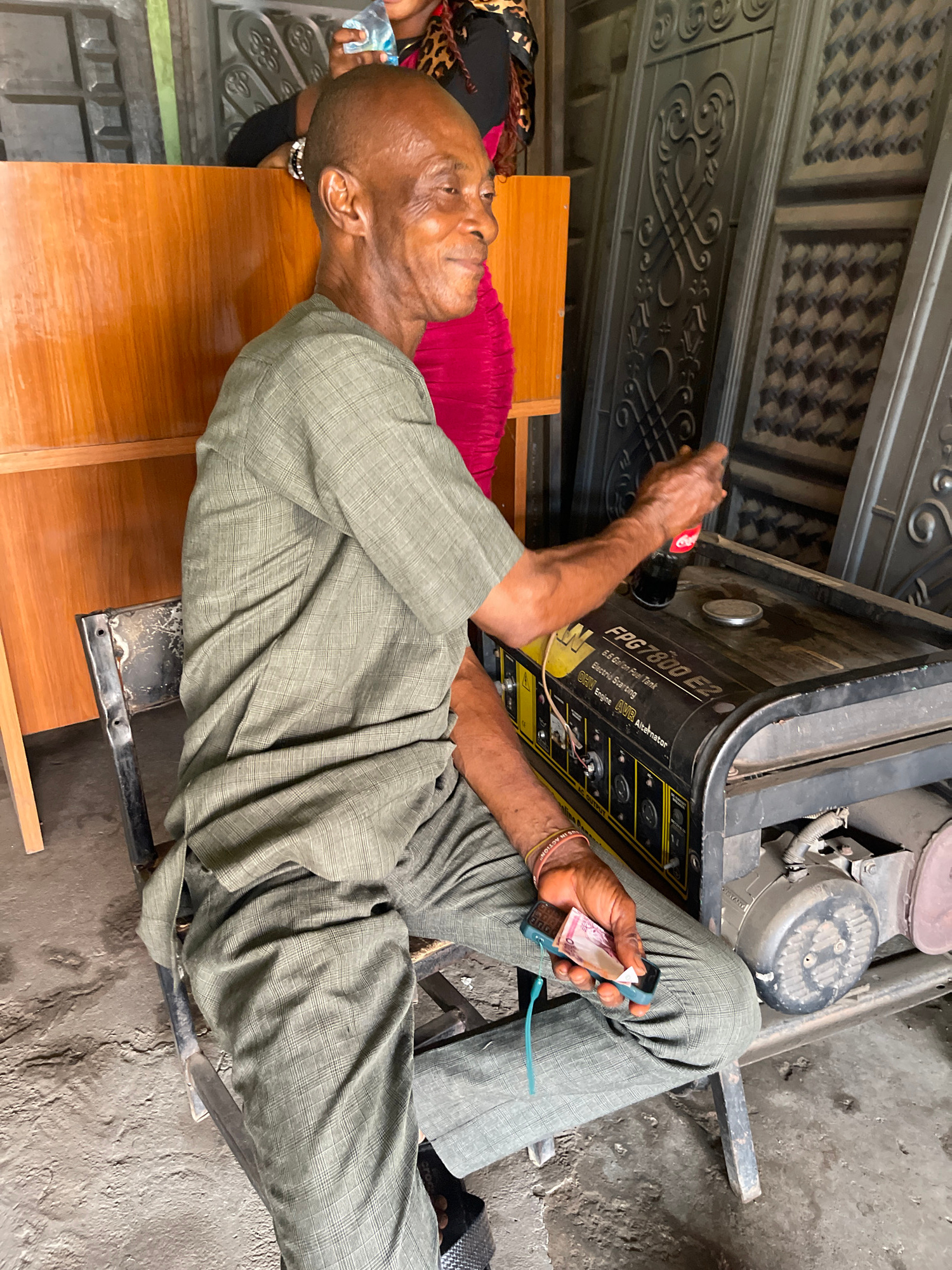 An older man, with dark skin and a bald head, is seated and engaged in a daily activity in what appears to be a semi-outdoor setting in Zaria, Nigeria. He is wearing a light green, possibly plaid, lonβ¦read more