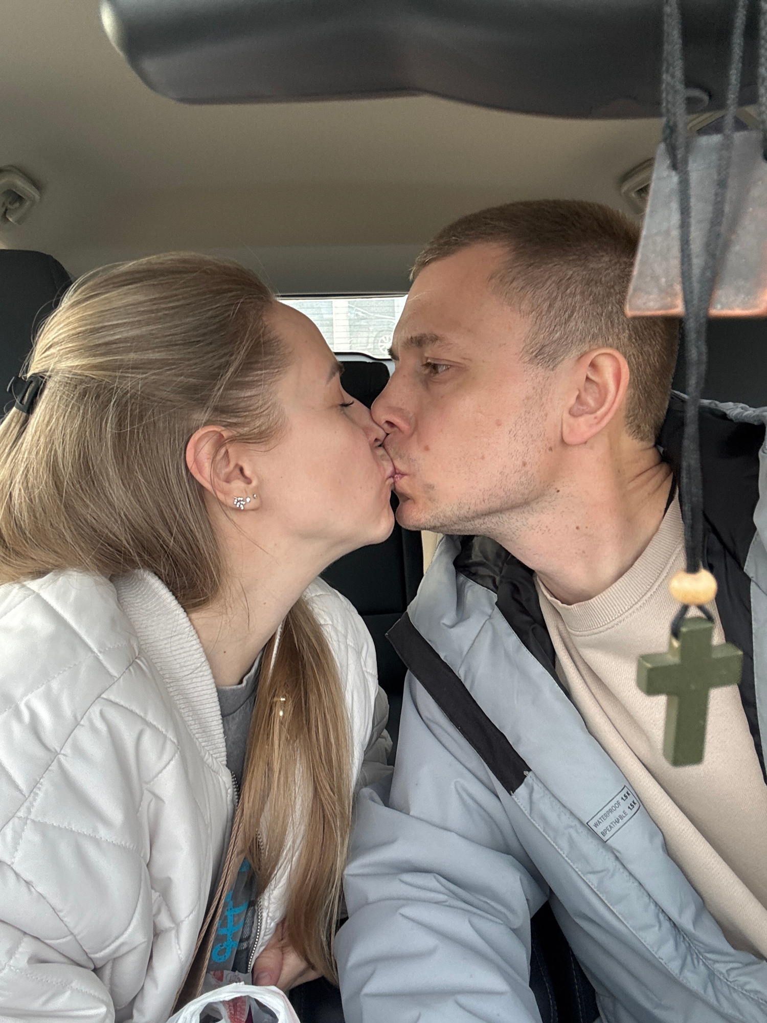 This intimate image, taken in Chaikovsky, Russia, captures a tender moment between a man and a woman sharing a kiss. The photo is rotated, showing the subjects as if lying on their sides, suggesting i…read more
