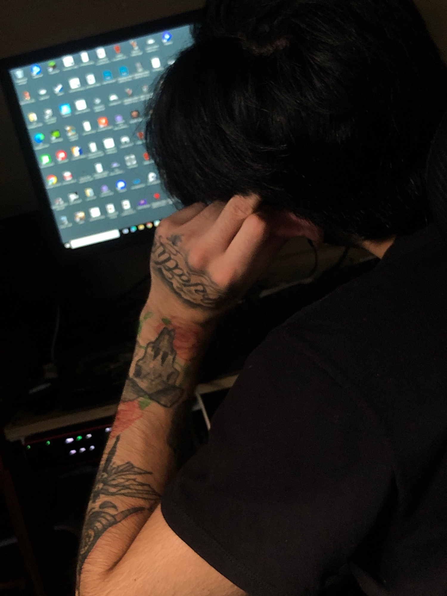 A person with dark hair is seated in front of a computer monitor displaying numerous application icons. The person has tattoos on their forearm and hand. The location in Buenos Aires, Argentina is not…read more