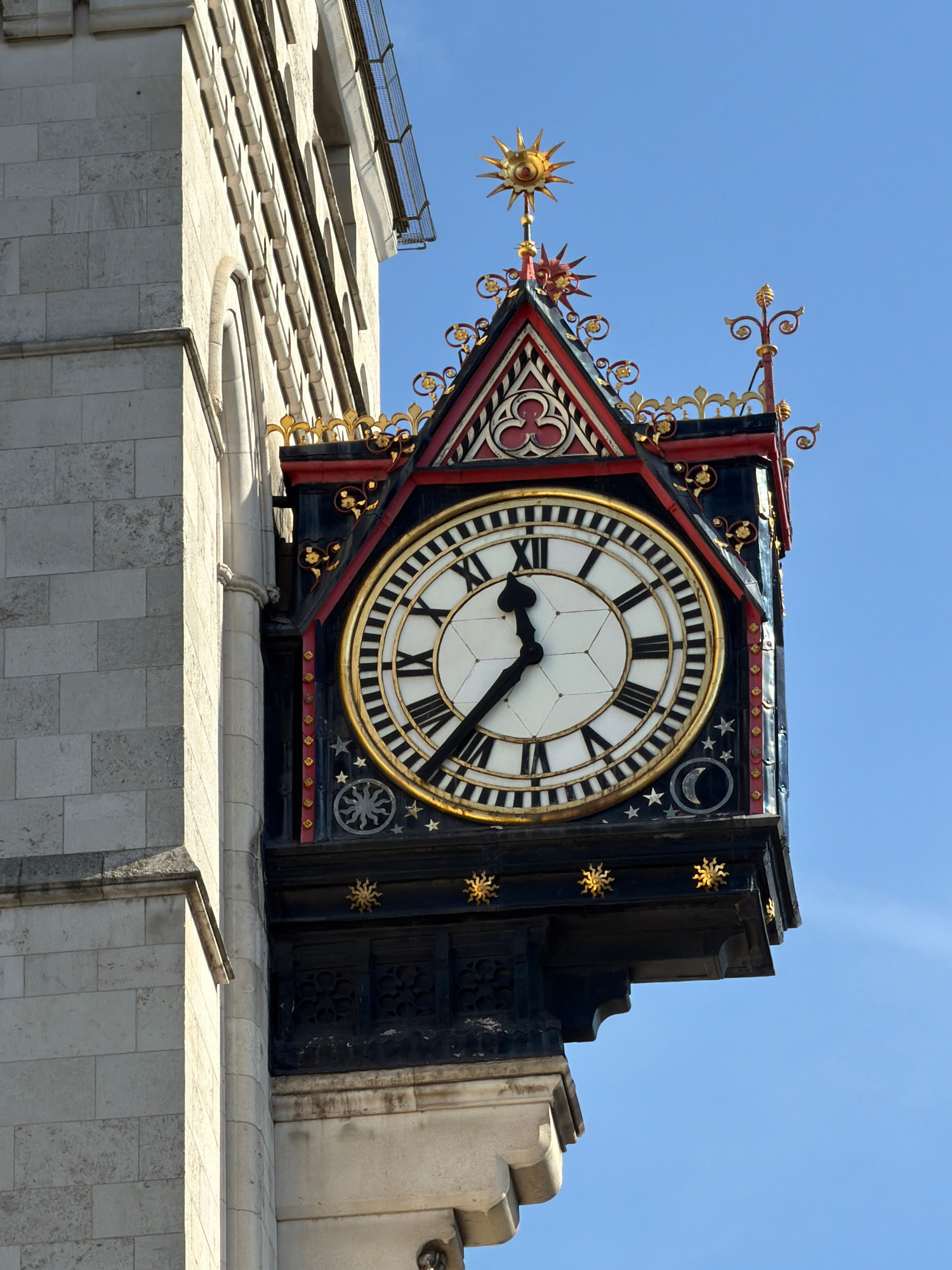 The image shows a close-up of the clock face of the Elizabeth Tower, commonly known as Big Ben, in London, United Kingdom. The clock face is round with Roman numerals and black hands showing approxima…read more