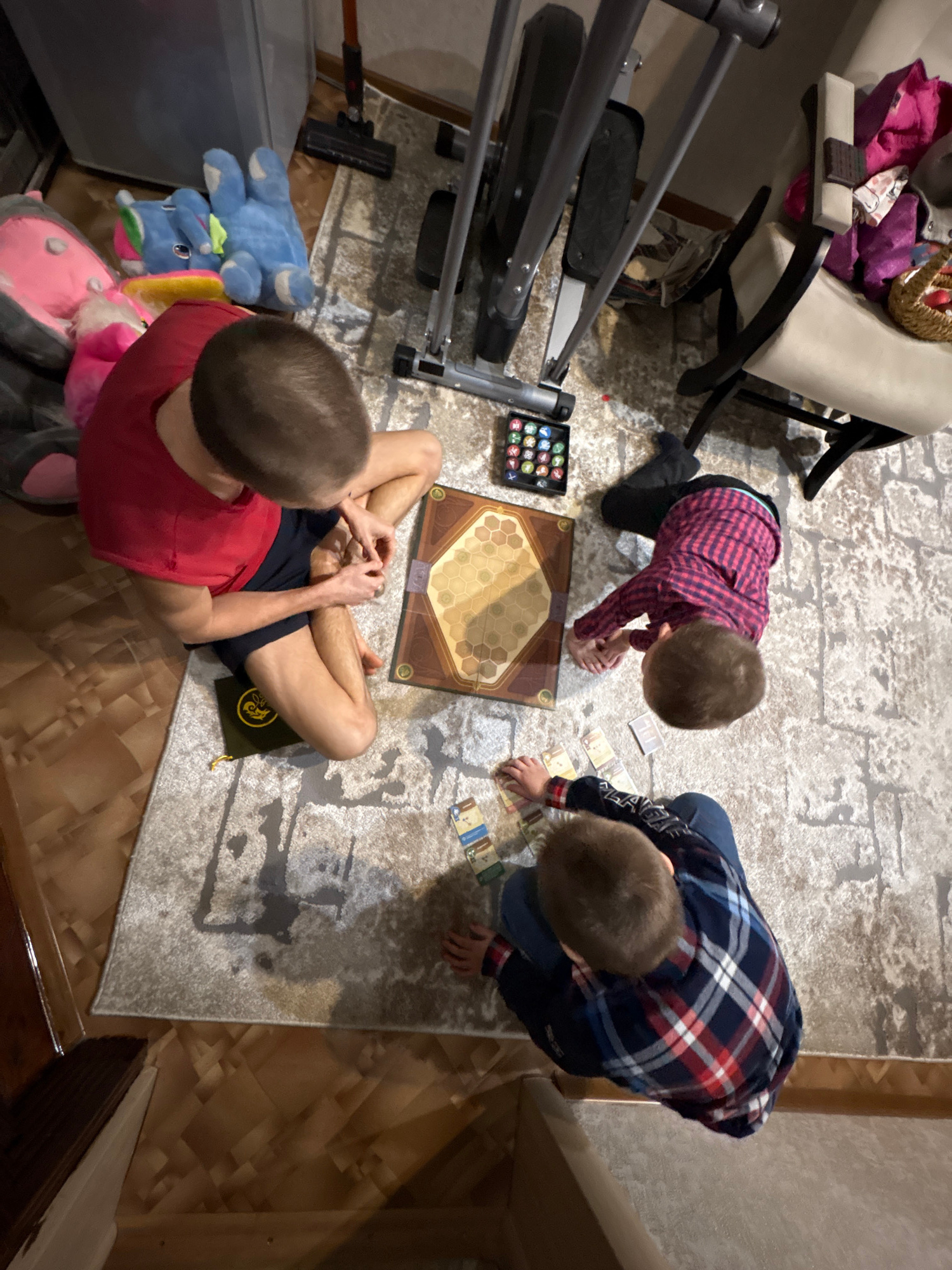 **Location:** Indoors, possibly a residence in Ulyanovsk, Russia, based on the presence of typical Russian household items and the general style of the interior. **People:** * Three individuals, li…read more