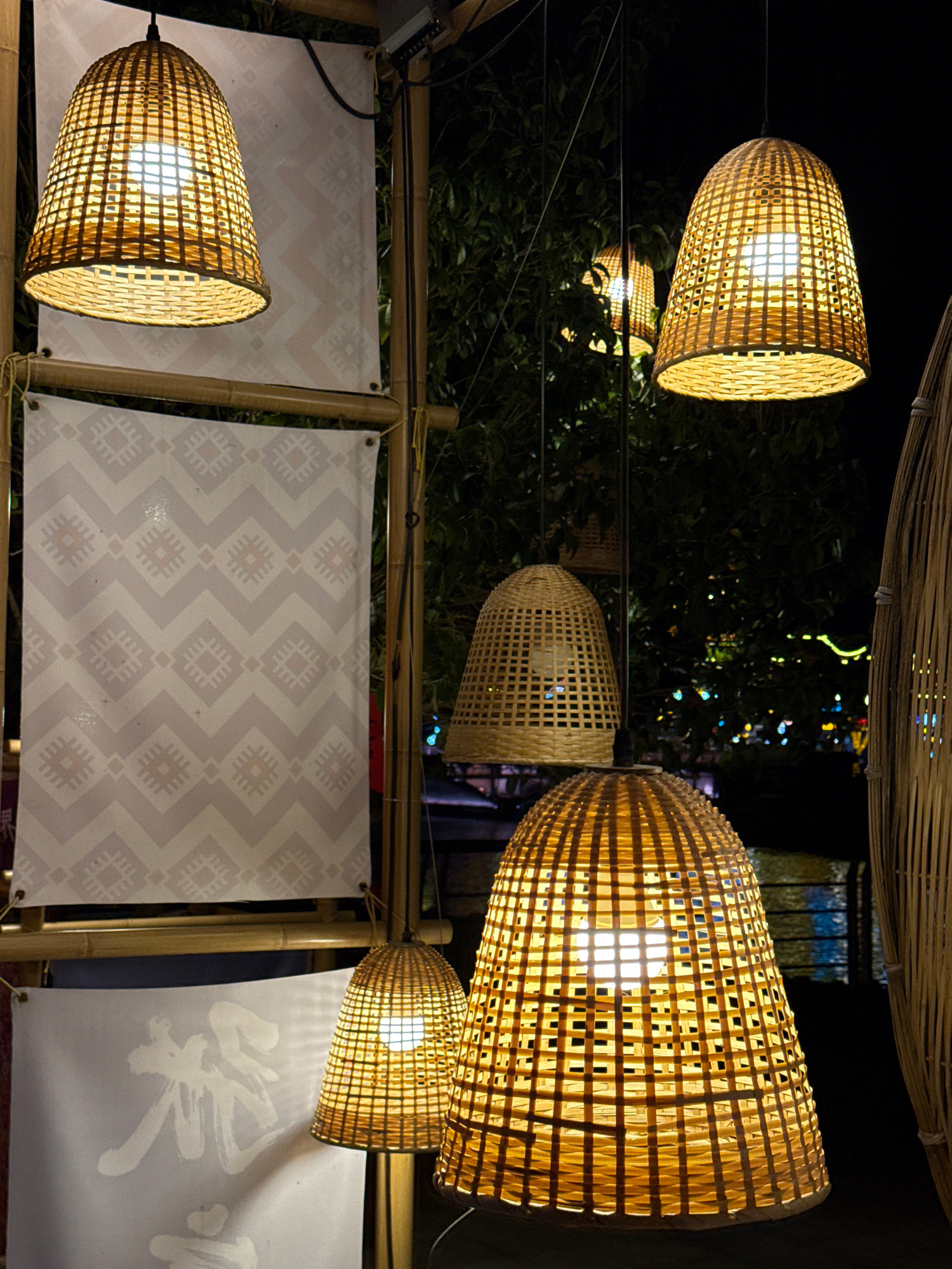 The image presents an illuminated outdoor night scene in Wulingyuan, China, showcasing a vibrant display of traditional bamboo lanterns and decorative banners. The central subjects are numerous handcr…read more