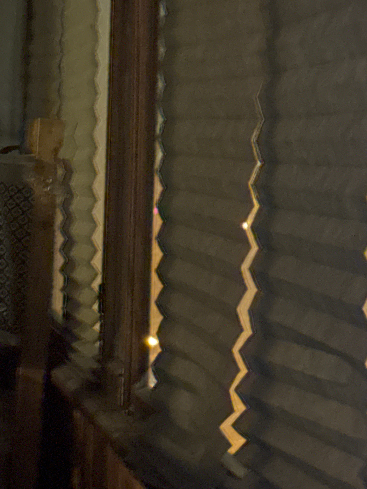 A close-up, somewhat blurry image reveals a building interior. The ceiling is structured with what appears to be rows of saw-tooth like architectural features, possibly skylights or ventilation shafts…read more