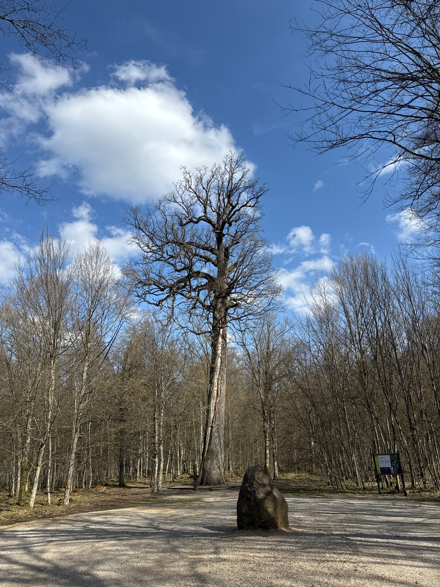 The image is a landscape view in what appears to be a park or forest in Шарашэўскі сельскі Савет, Belarus. The perspective is tilted and looks up towards the sky. Dominating the scene are numerous bar…read more