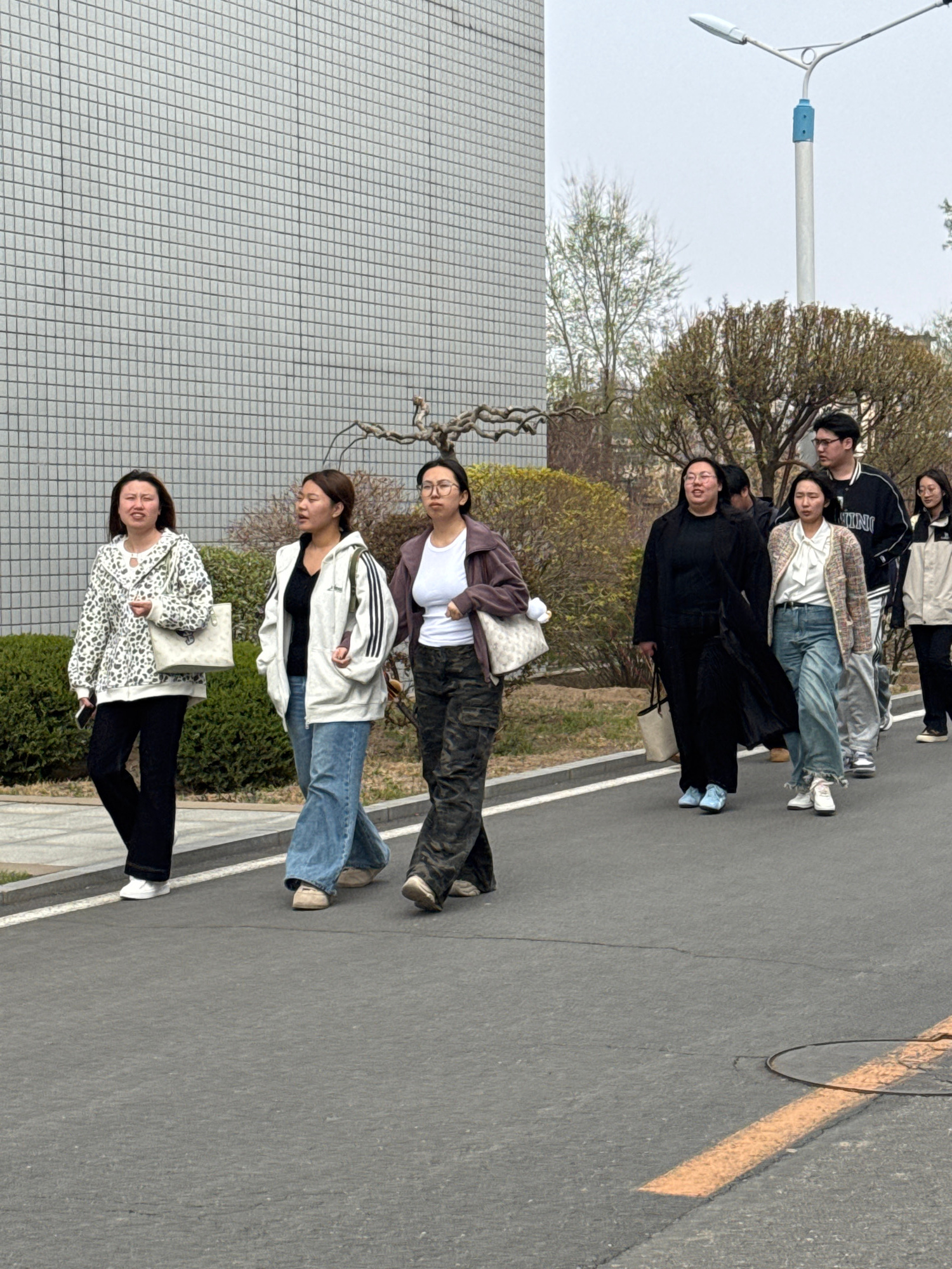 This image, captured in Zhongtun, China, depicts seven young adults walking or standing on a paved outdoor path or road. The scene is set during the daytime, under bright, clear weather conditions, liβ¦read more