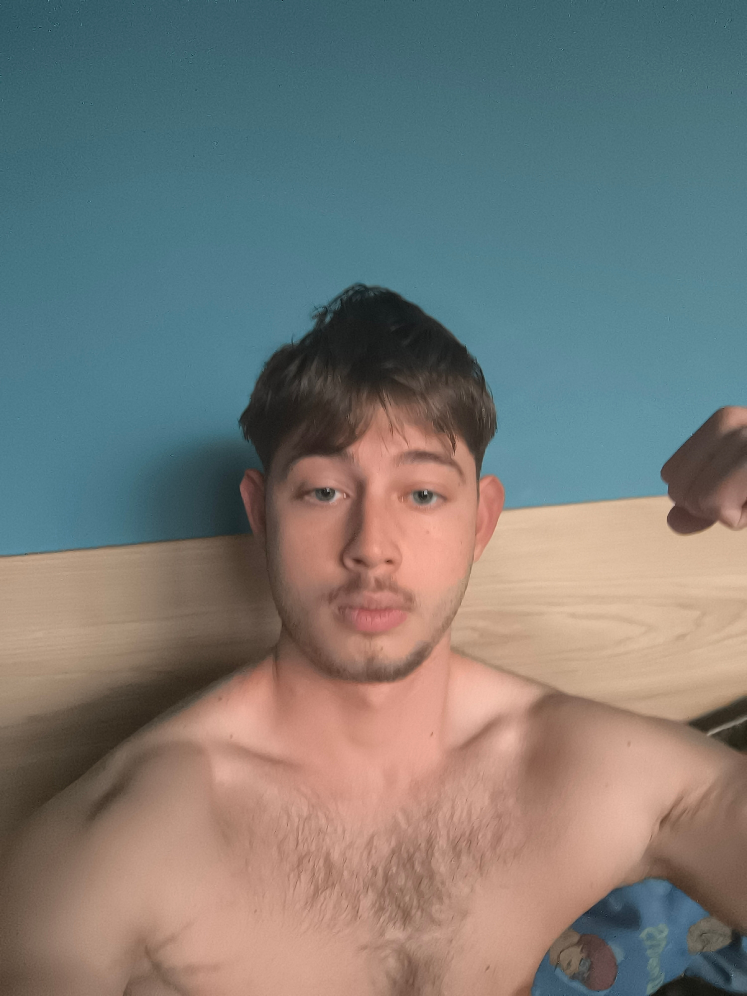 A young man, appearing to be in his late teens or early twenties, is the central subject of this front-facing, medium close-up photograph. He has short to medium brown hair, styled with bangs over his…read more