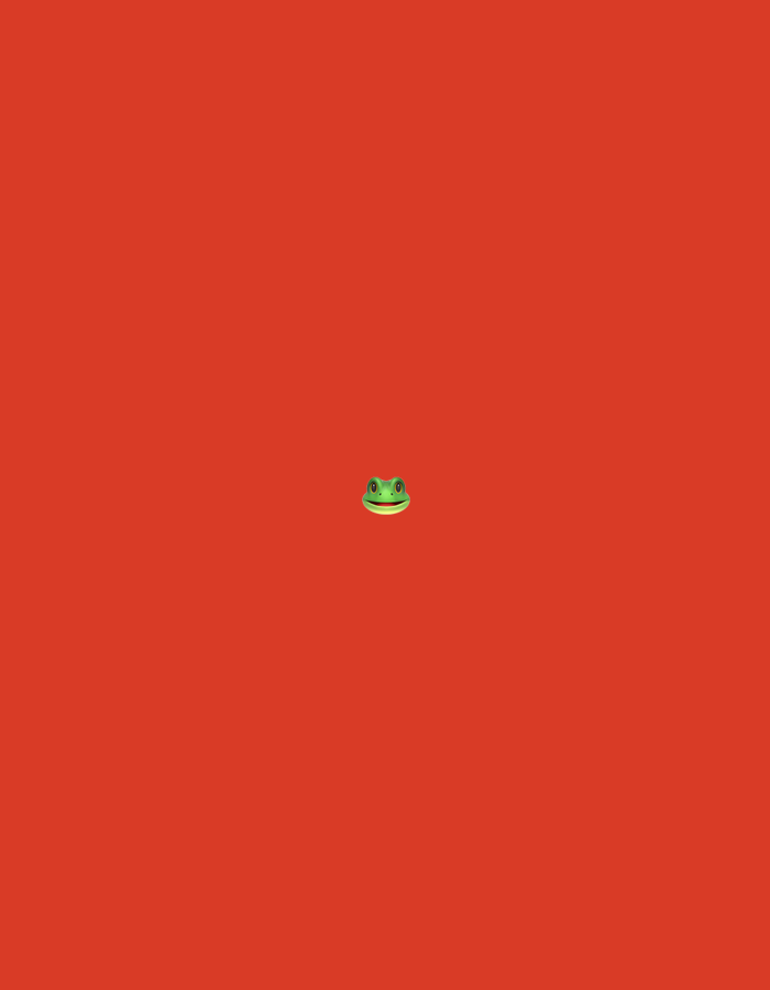 The scene depicts a minimalist digital graphic featuring a uniform, solid red background. Centrally positioned, slightly below the vertical midpoint of the image, is a small, stylized frog head. The f…read more