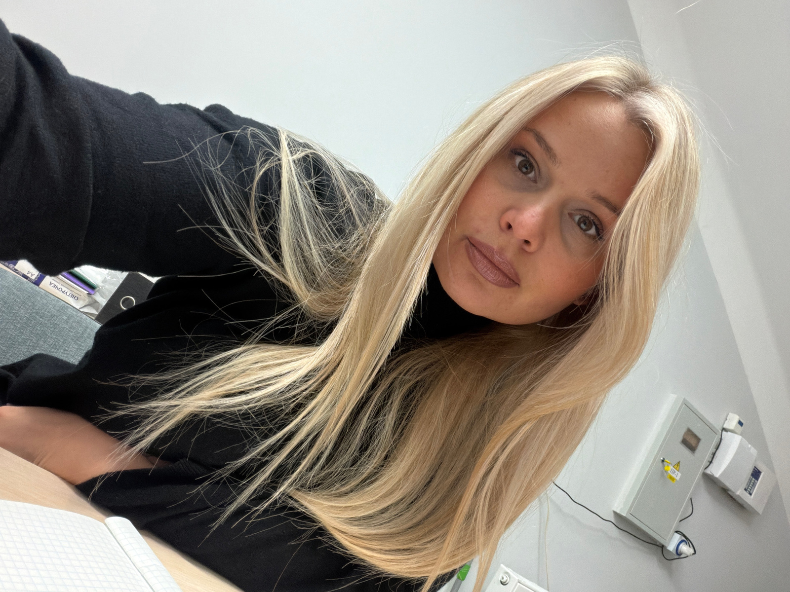 A blonde woman in a black turtleneck sweater is positioned in an indoor environment. She appears to be in a clinical setting, possibly a medical office or clinic, as indicated by the light gray wall a…read more