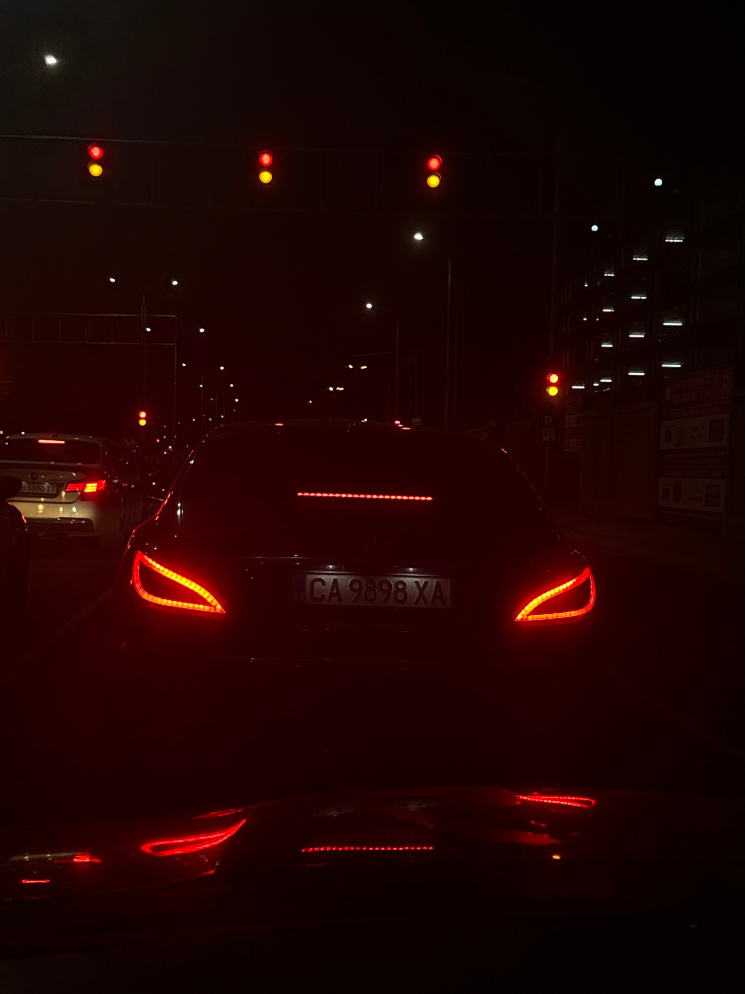 The image depicts the rear of a car with Bulgarian license plate "CA 9898 XA" at night in Plovdiv, Bulgaria. The car's taillights are illuminated, as are various streetlights in the background. The ov…read more