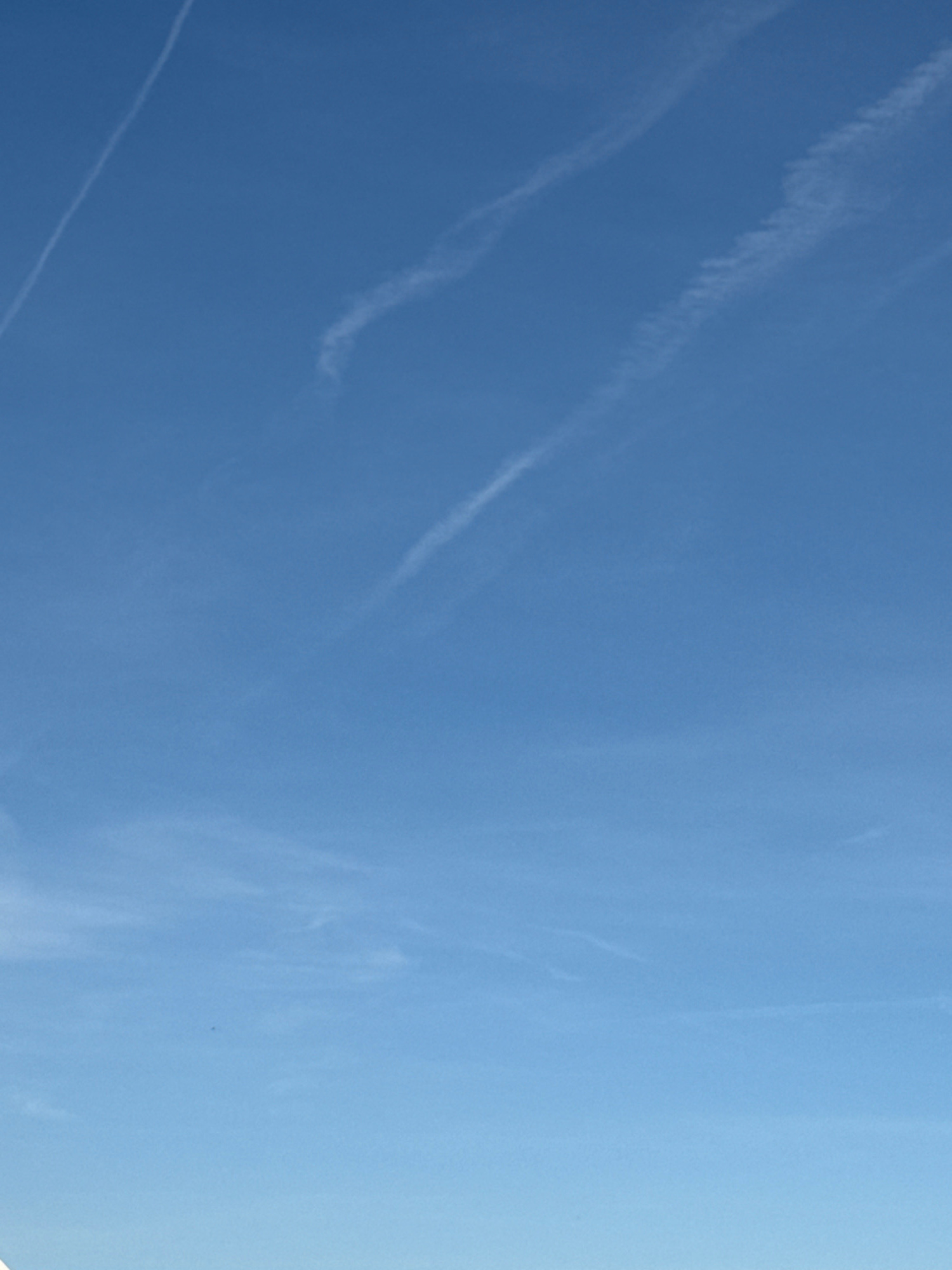 The image shows a clear blue sky, with several contrails visible across the frame. The sky transitions to a lighter shade of blue towards the right side of the image. The location is presumed to be Va…read more