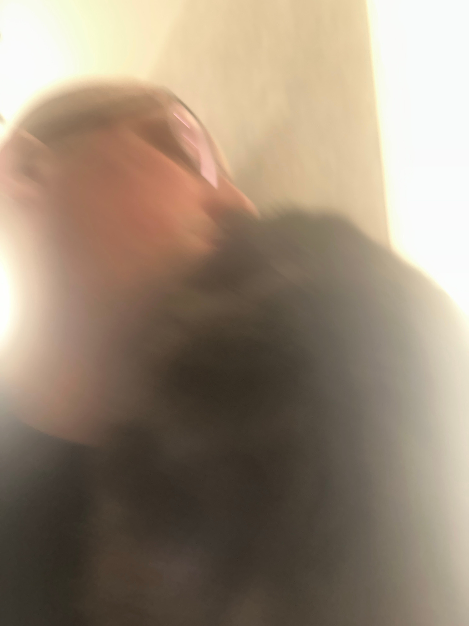 The image is blurry and difficult to interpret. There appears to be a person with dark hair. The background is indistinct, with areas of light and dark. There is insufficient detail to determine a loc…read more