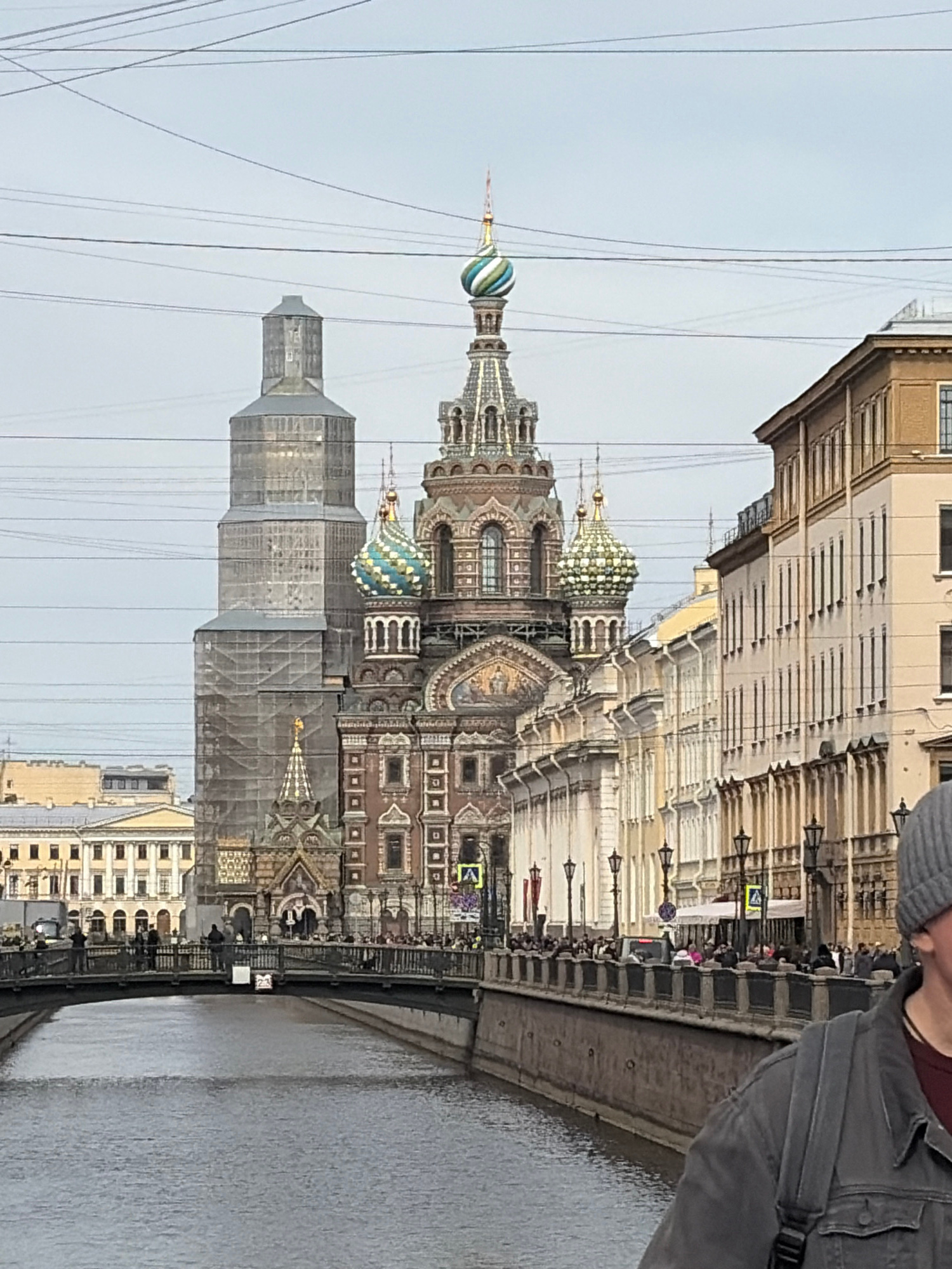 The image captures the Church of the Savior on Spilled Blood in Saint Petersburg, Russia, as seen from a bridge over a canal. The church's distinctive, multi-colored onion domes and ornate facade areβ¦read more