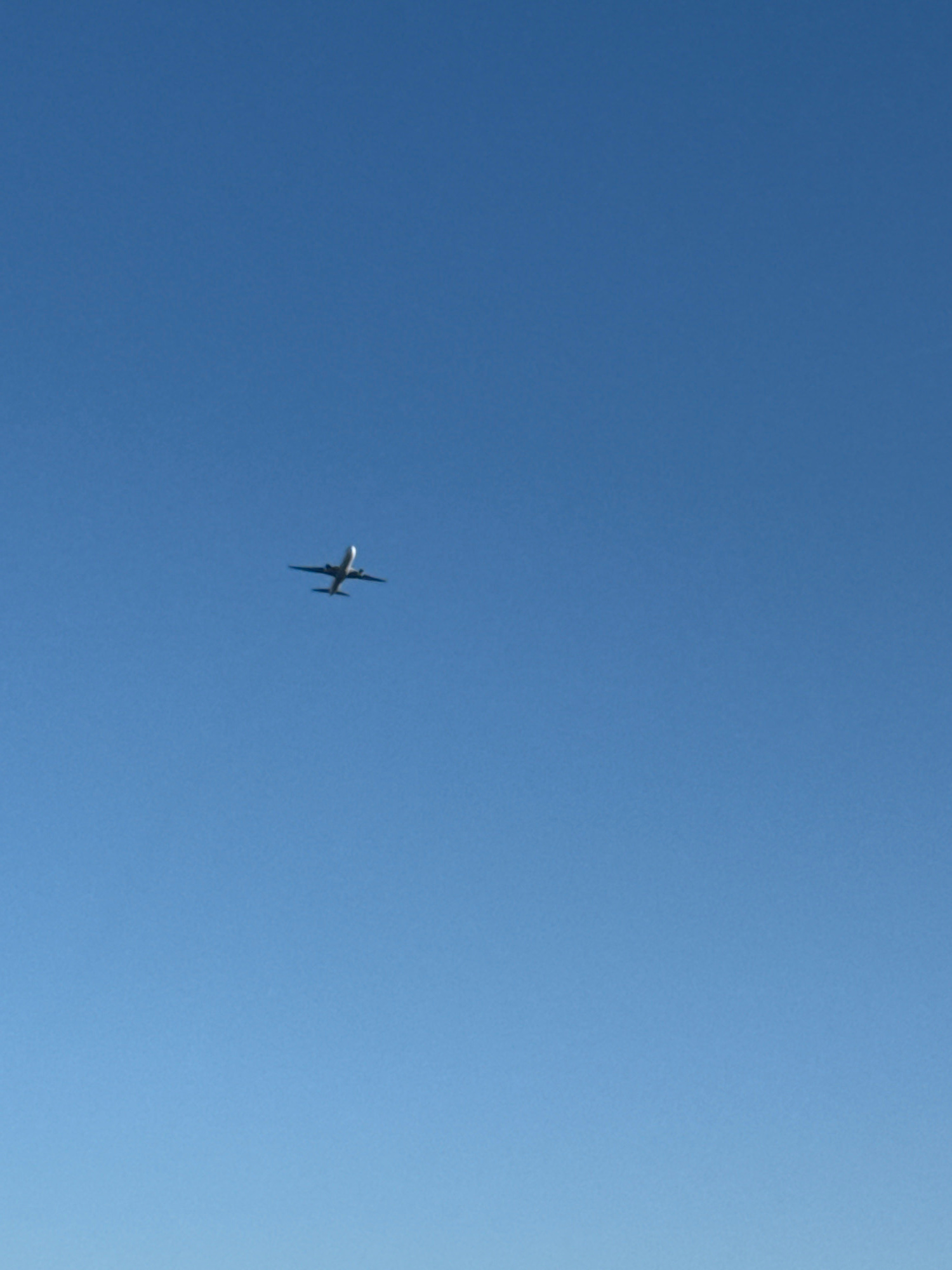 An airplane is flying in the blue sky. The location is unknown, not confirmed to be Tbilisi, Georgia.