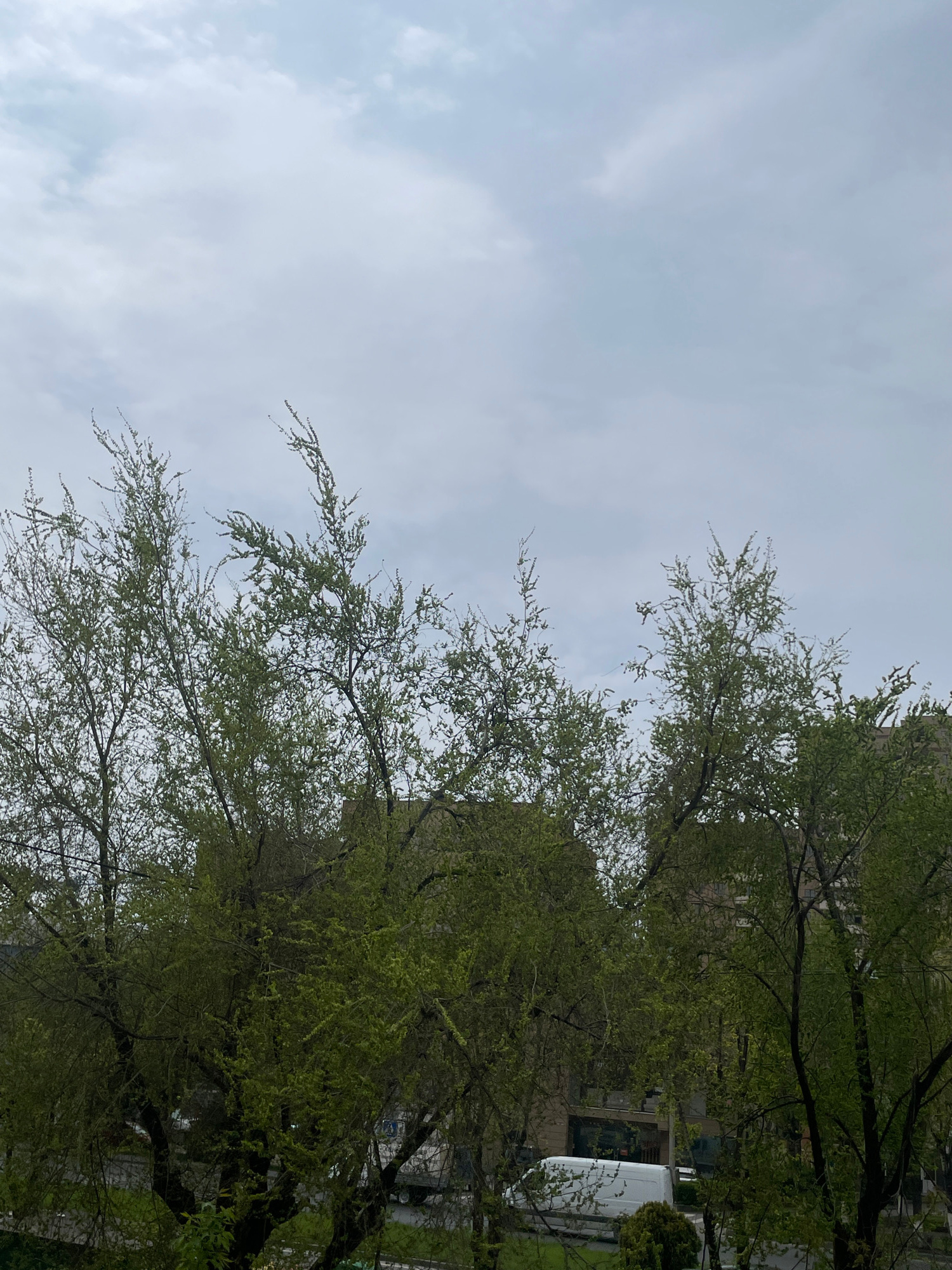 The image captures an outdoor scene dominated by a natural landscape element under an overcast sky. The composition is primarily split between a light grey, cloudy sky occupying roughly the left halfβ¦read more