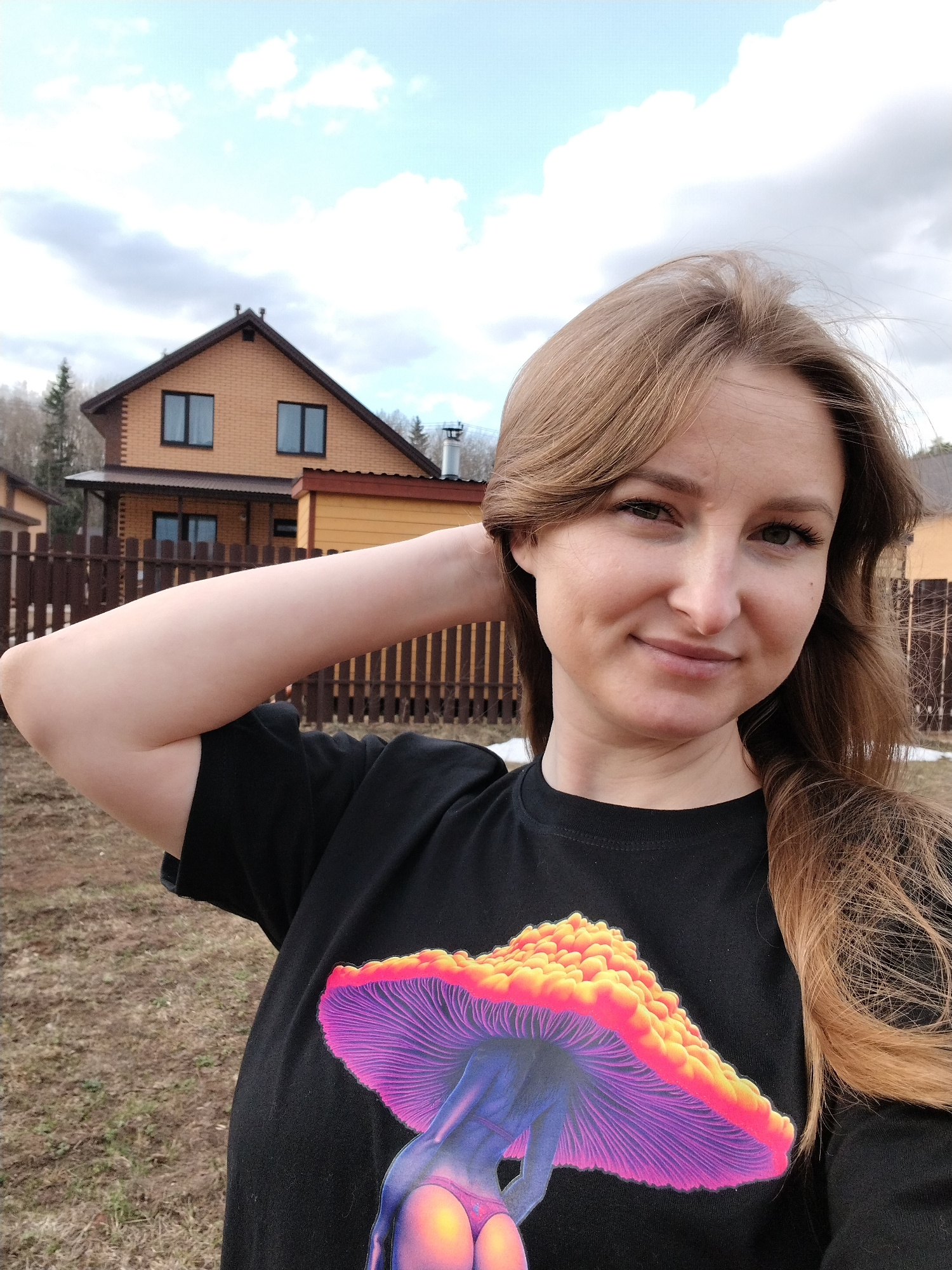 A young woman is posing in a selfie in front of a wooden fence and a house in what appears to be a suburban area. The house behind her is constructed from brown brick and has a brown roof. The sky is…read more