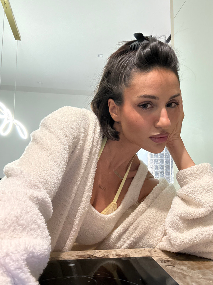 A female subject is depicted leaning forward over a dark, reflective surface, likely a kitchen countertop, in a modern indoor setting within the city of Unknown, Unknown. She appears to be in her late…read more