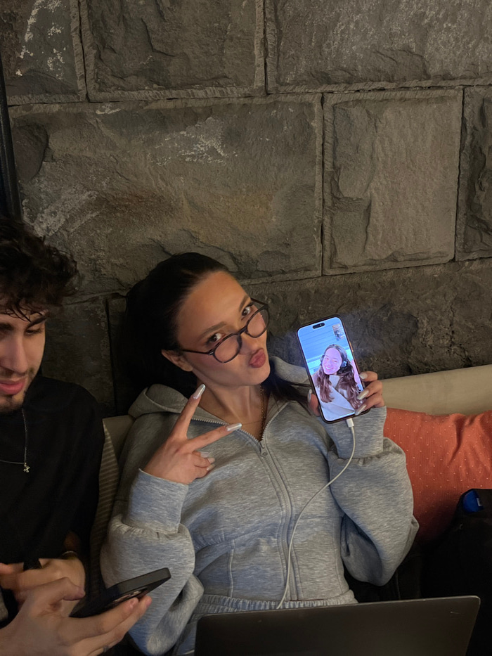 An indoor scene in what appears to be a public establishment in Yerevan, Armenia, is captured. A woman, estimated to be in her 20s or 30s, with dark hair and wearing eyeglasses, a gray zippered hoodie…read more