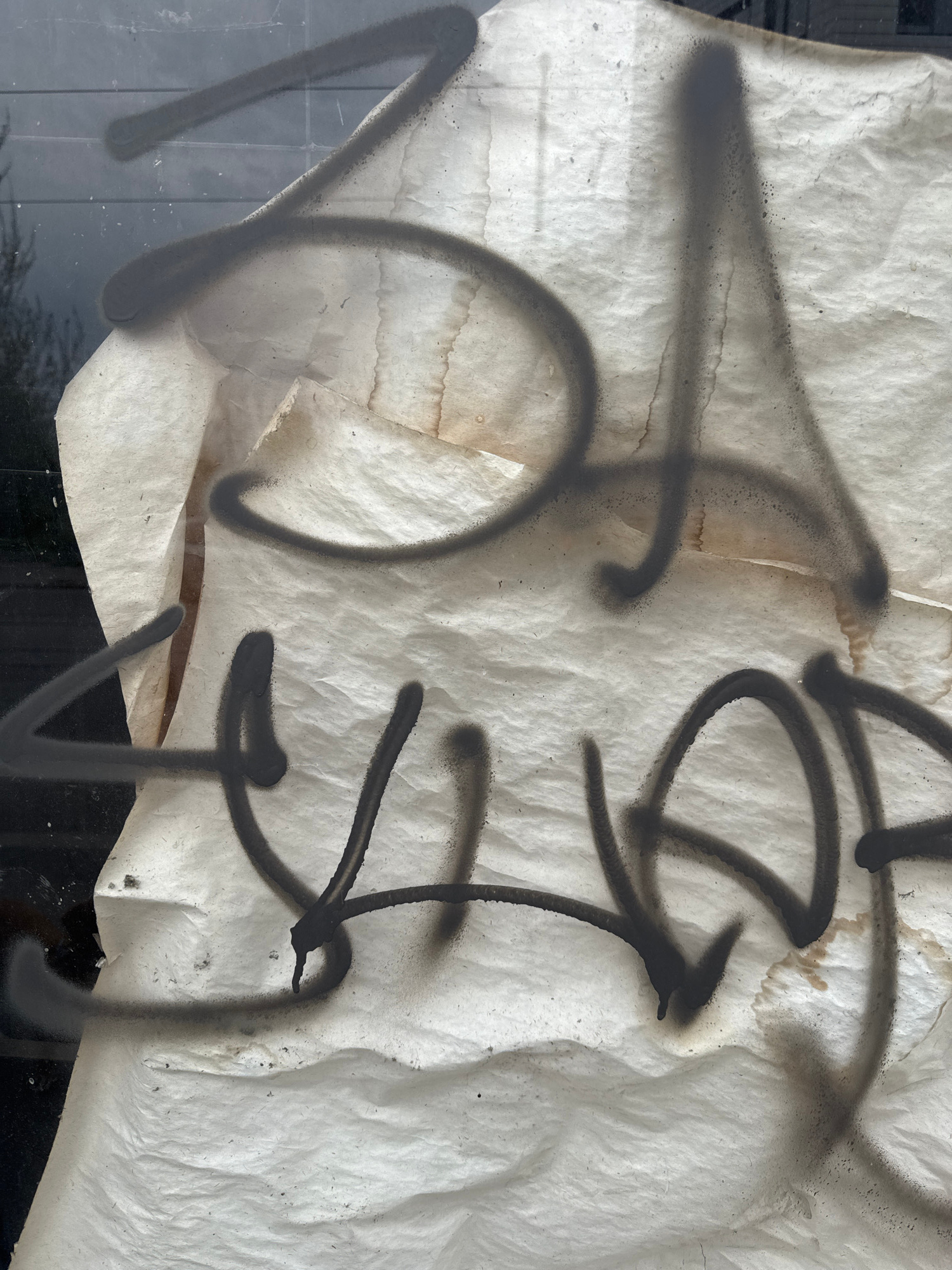 The image presents a close-up view of a textured surface, dominated by a large, crumpled sheet of off-white paper. The paper exhibits significant wear, with numerous wrinkles, folds, and brownish-yell…read more
