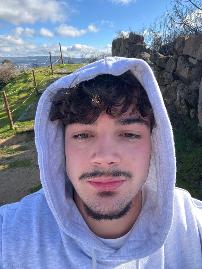 A forensic examination of the image reveals a close-up selfie of a young adult male positioned outdoors in an elevated area overlooking the city of Vila Real, Portugal. The male subject, with a lightβ¦read more