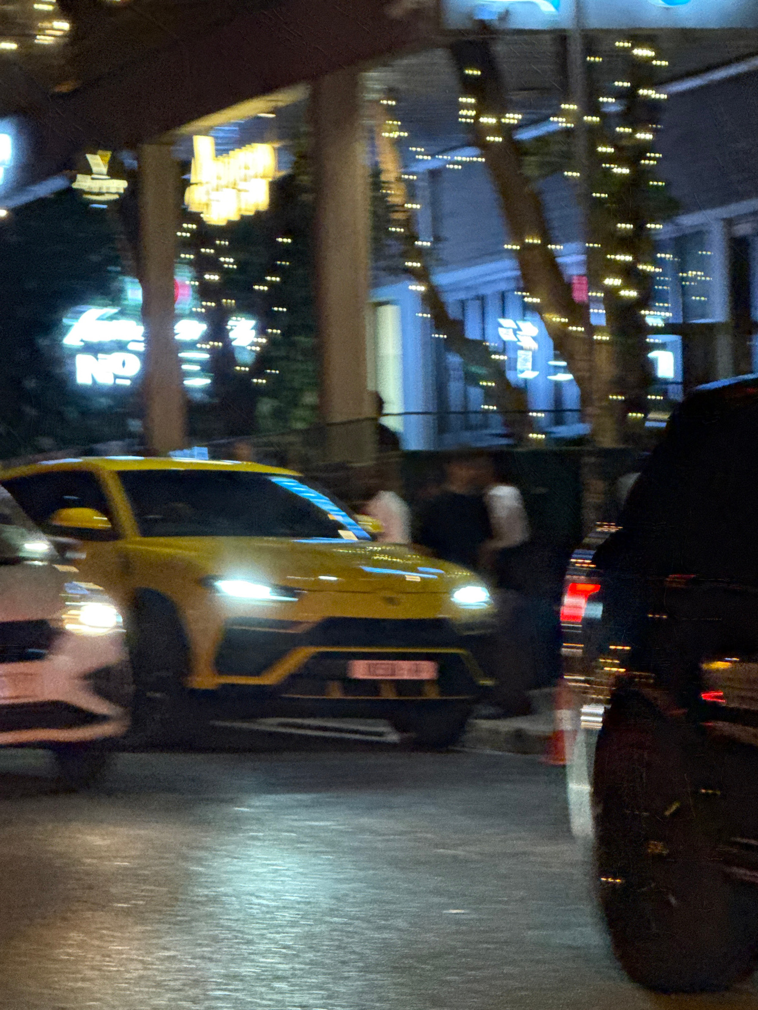 The image depicts a night scene on a street in Cape Town, South Africa, with a yellow car in the foreground and various blurred lights suggesting a city environment. The car's headlights are on, and t…read more