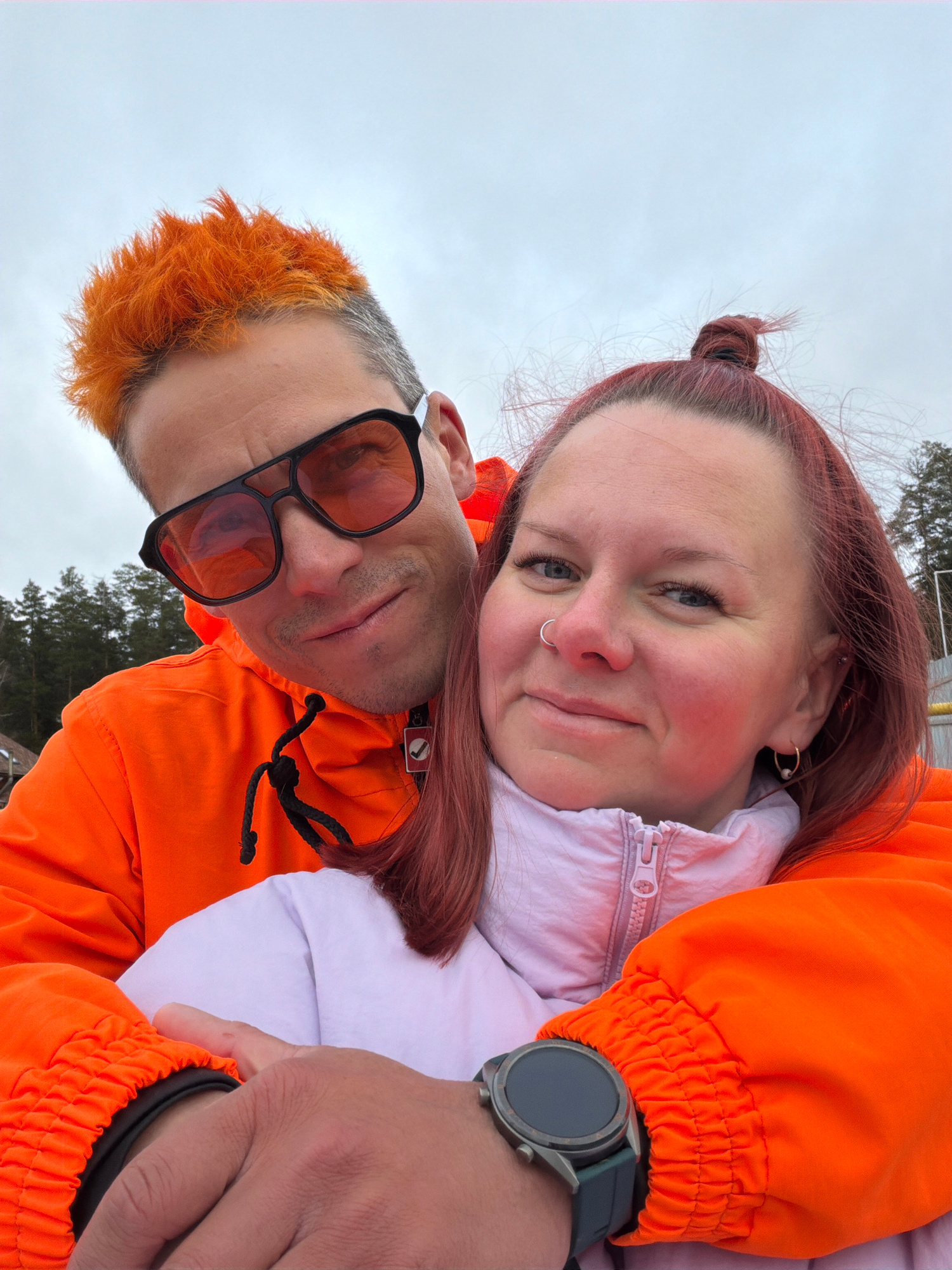 A close-up, angled portrait captures two individuals, a man and a woman, posing together outdoors in Chaikovsky, Russia, against an overcast sky. The woman, positioned slightly above and to the left,…read more