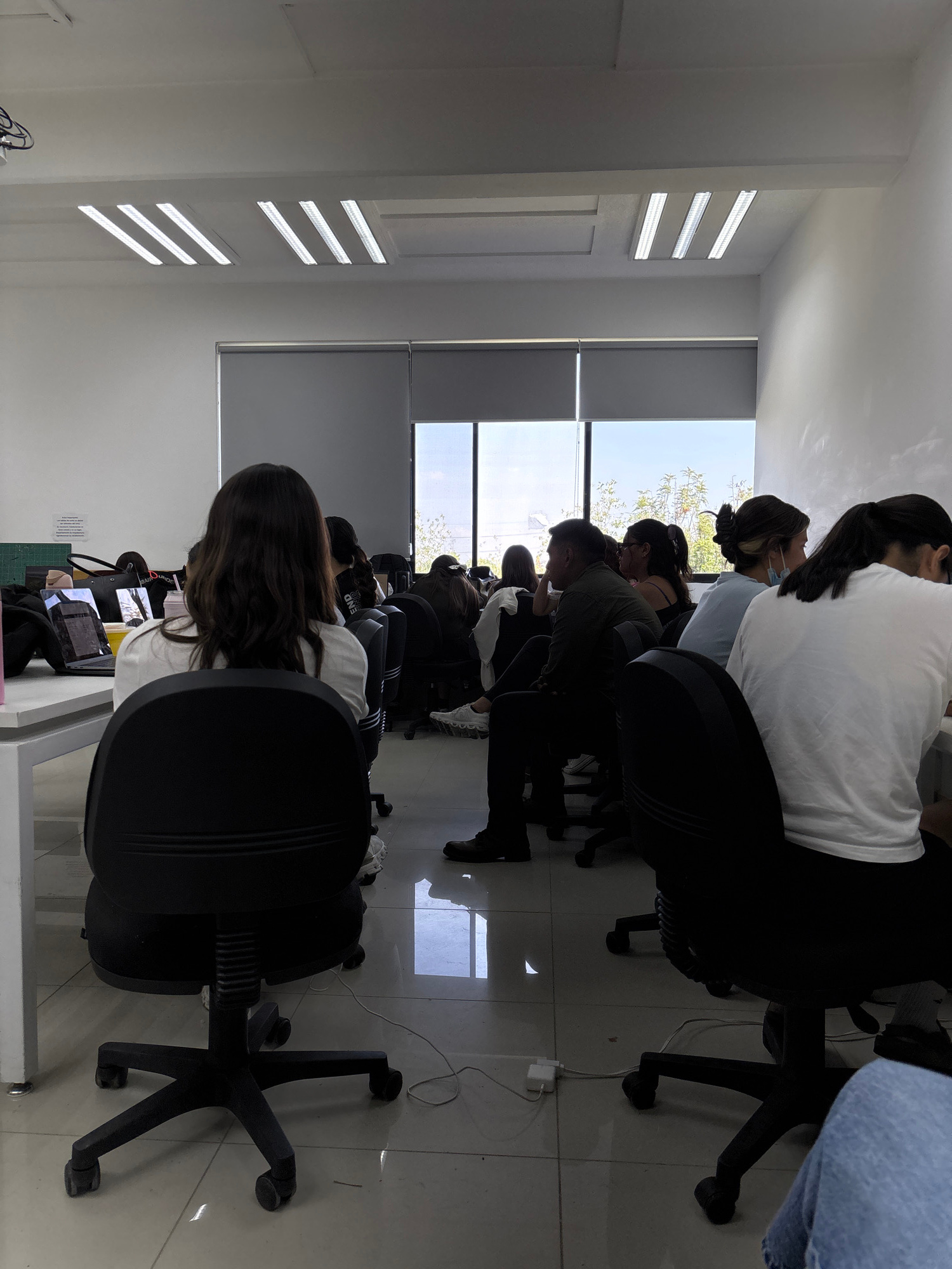 The image shows a classroom setting at a university in San Andrés Cholula, Mexico. There are several students sitting at desks, appearing to be engaged in individual work on laptops or tablets. The ro…read more