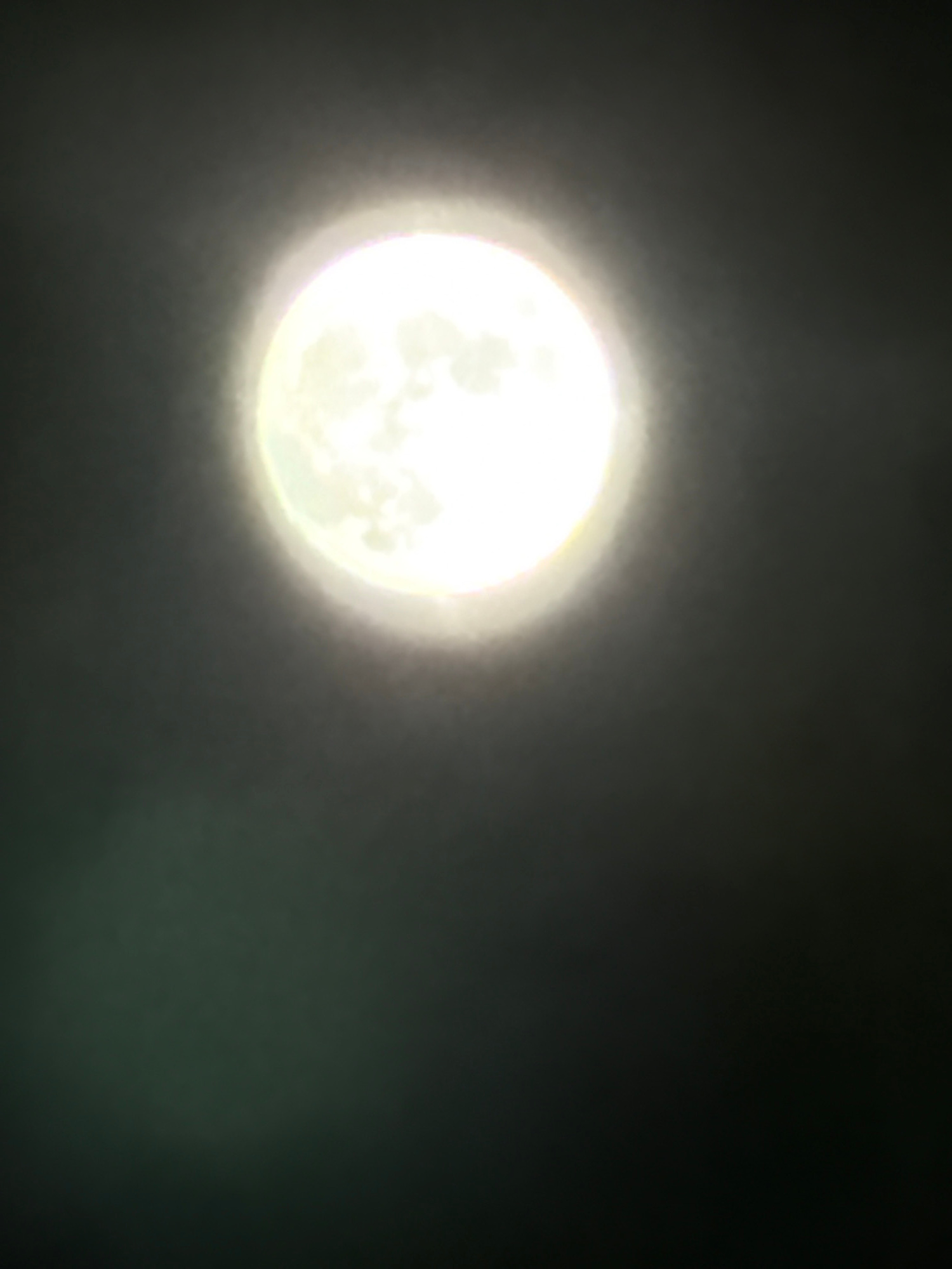A brightly illuminated moon, appearing nearly full, dominates the left side of the frame. The background is a dark, overcast sky, suggesting a night scene. There is no evidence to confirm the location…read more