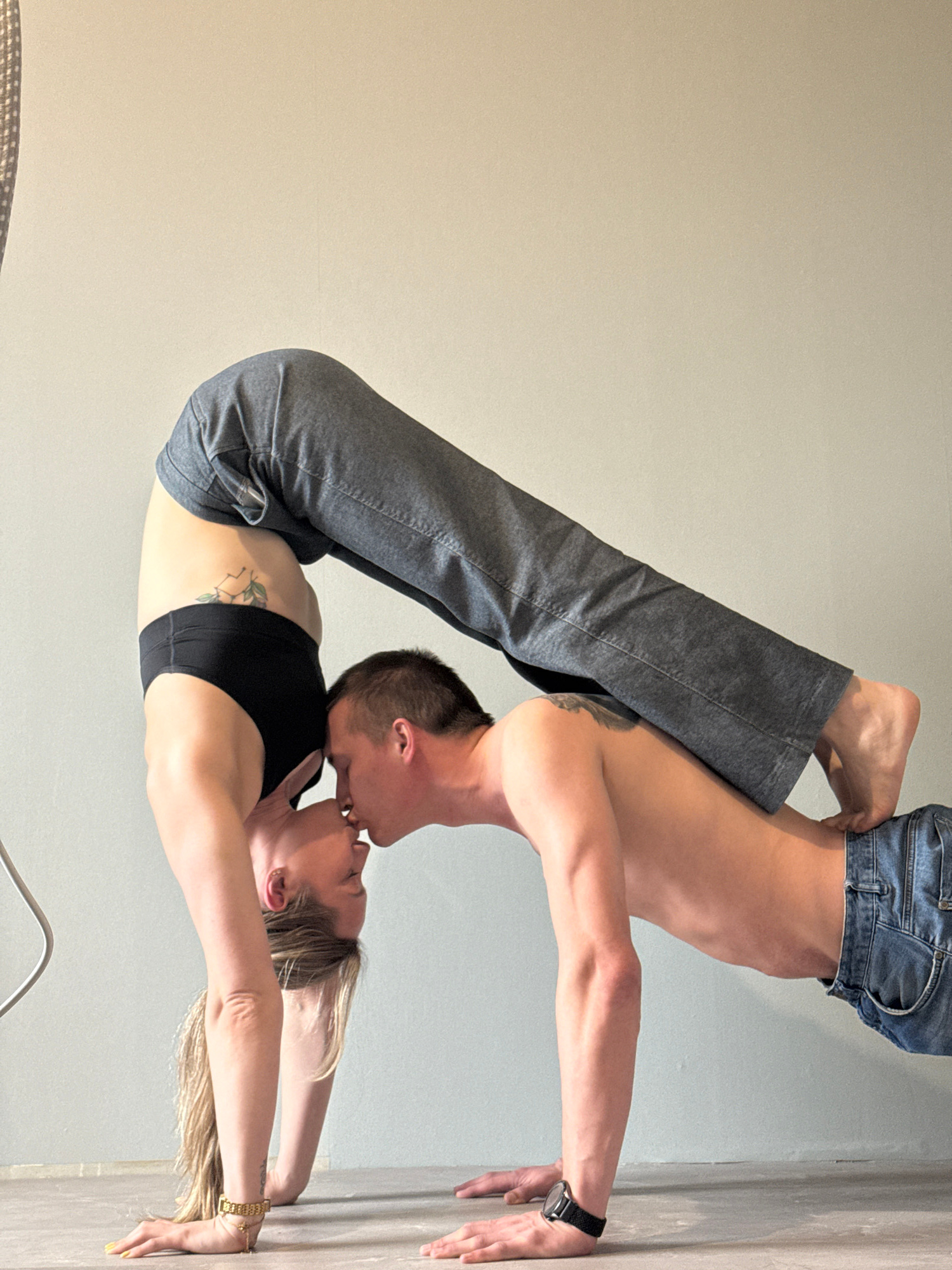 This intimate portrait, taken in Chaikovsky, Russia, features a man and a woman performing a partner acrobatic or yoga pose while kissing. The image is oriented sideways, but assuming an upright view,…read more