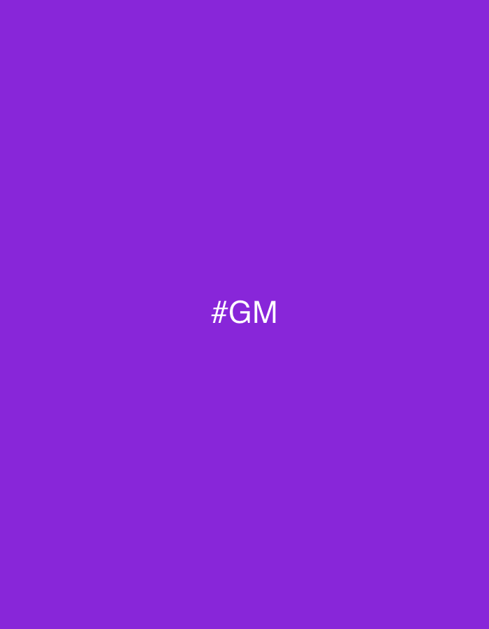 The image shows a solid purple background with the text "#GM" in white at the center. There is no location, people, objects, actions, interactions, or environment depicted beyond this.