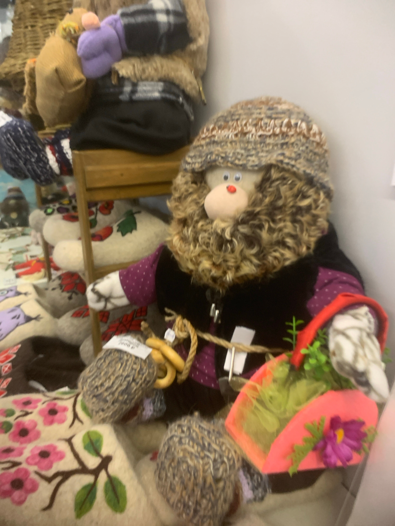 The image appears to be a cluttered display of handcrafted dolls and related items. The location cannot be confirmed as Izhevsk, Russia, from the image alone. **Objects:** Several dolls with varied d…read more