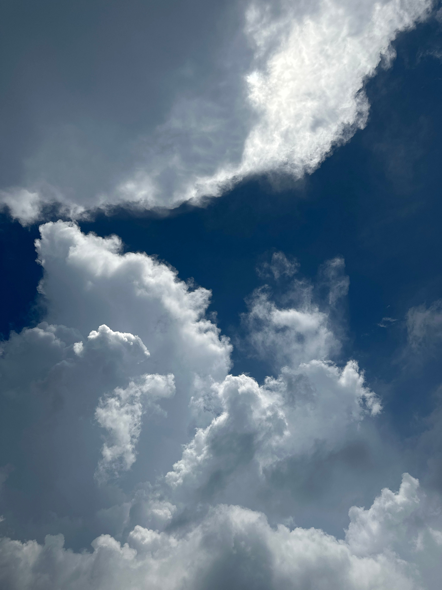 The image shows a view of clouds in the sky over Choeng Thale, Thailand. The clouds are white and gray, and the sky is a deep blue. The clouds appear to be thick and heavy, suggesting a potential stor…read more
